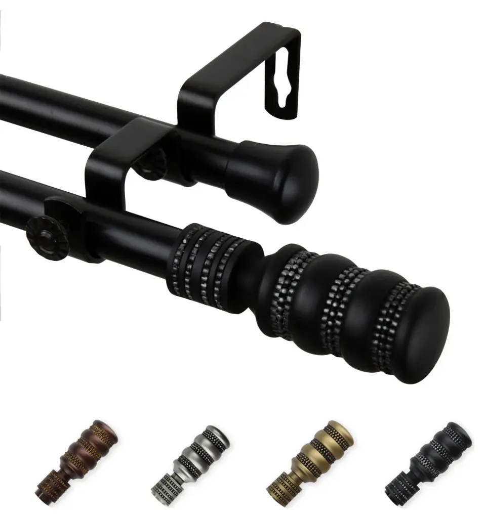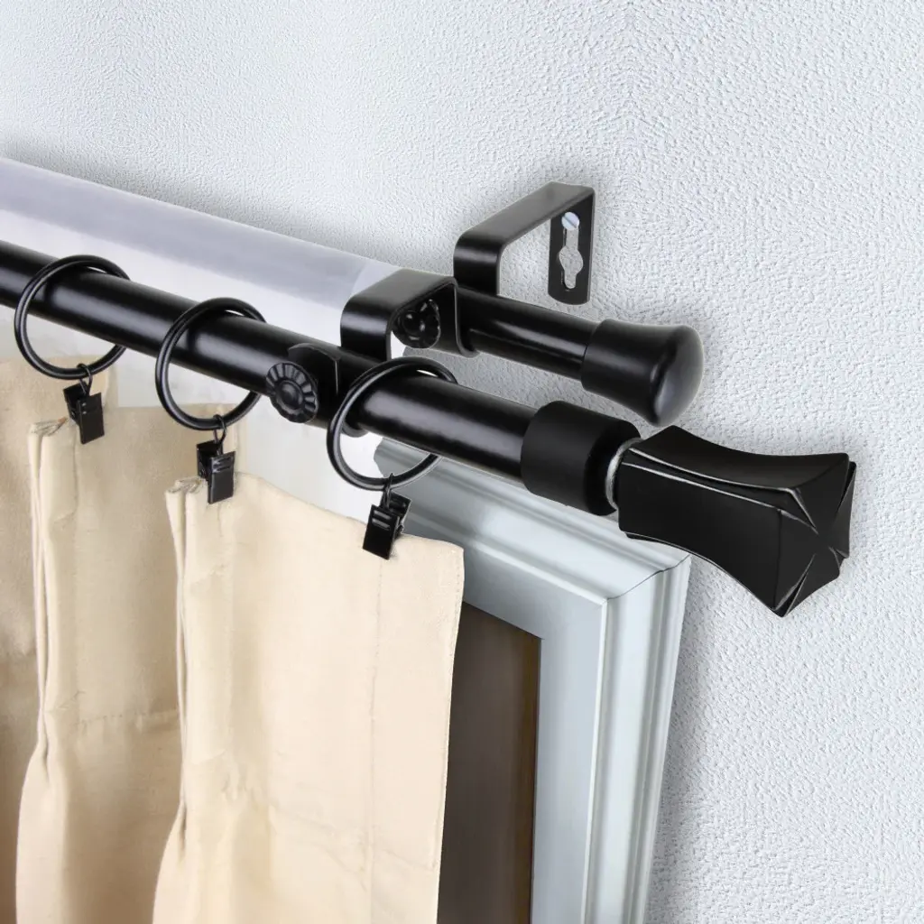 Introduce an elegant touch to your window treatment with this beautiful 13/16" diameter double curtain rod set, made of high quality steel rods. Includes 2 telescoping steel pole, mounting hardware, brackets, and 2 finials Projection: 2.875" Finial measurement: 3.25" W x 1.25" H x 1.25" D