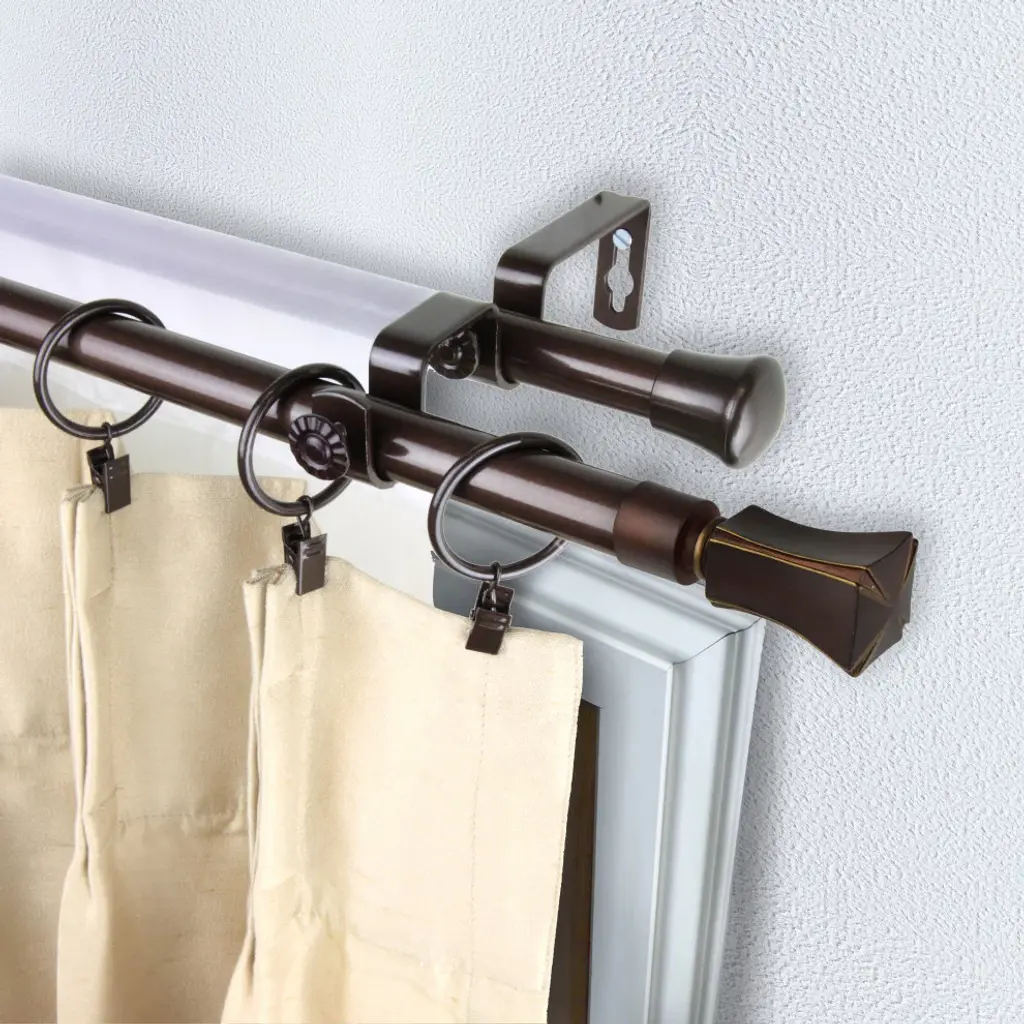 Introduce an elegant touch to your window treatment with this beautiful 13/16" diameter double curtain rod set, made of high quality steel rods. Includes 2 telescoping steel pole, mounting hardware, brackets, and 2 finials Projection: 2.875" Finial measurement: 3.25" W x 1.25" H x 1.25" D