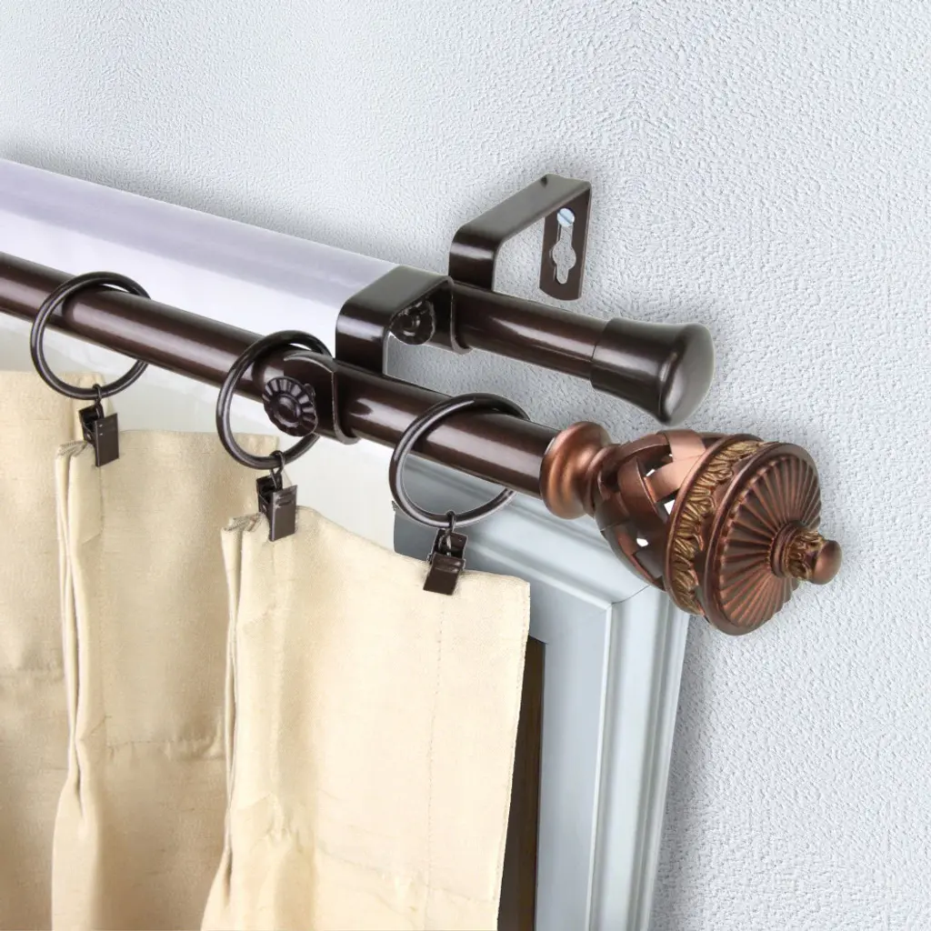 Introduce an elegant touch to your window treatment with this beautiful 13/16" diameter double curtain rod set, made of high quality steel rods. Includes 2 telescoping steel pole, mounting hardware, brackets, and 2 finials Projection: 2.875" Finial measurement: 3" W x 1.75" H x 1.75" D