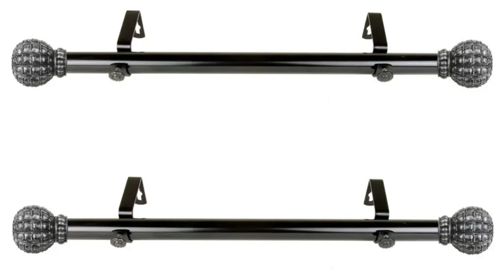 This side mount curtain rod will add alluring style and refined touch to your window treatment and home decor.Includes two 1" diameter telescoping 12-20 inches rod, four finials, four side mount brackets and mounting hardware.Finial Measurement: 3-1/2"W x 2-3/4"H x 2-3/4"D.Bracket Projection: 3.625 inches.Installation instructions included.Steel Rod and Resin Finials