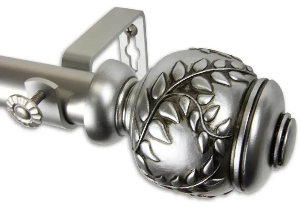 Includes: 1" front rod and 13/16" back rod, finials, mounting hardware. Projection: 3.625" Finials Measure: 3.5" x 2.75" x 2.75"