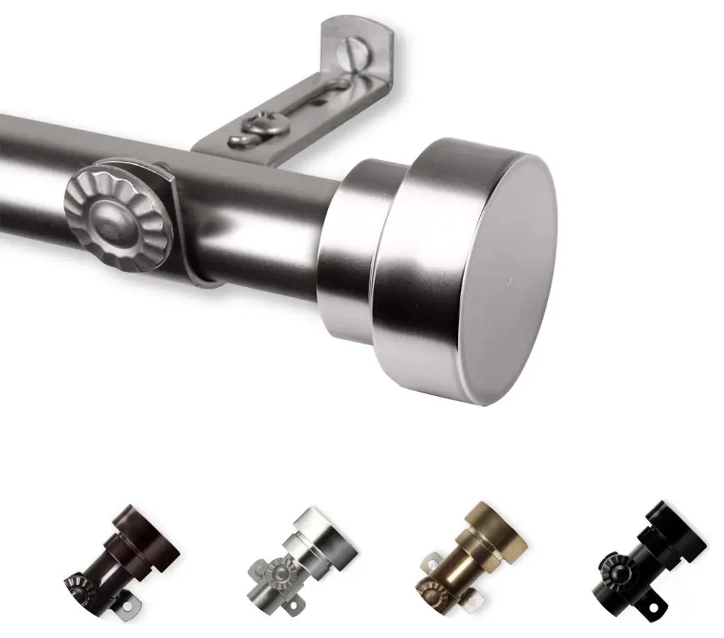 Introduce an elegant touch to your window treatment with this beautiful 13/16" diameter curtain rod set, made of high quality steel rods. Includes telescoping steel pole, mounting hardware, brackets, and 2 finials Projection: 2.875" Finial measurement: 2.375" W x 1" H x 1" D