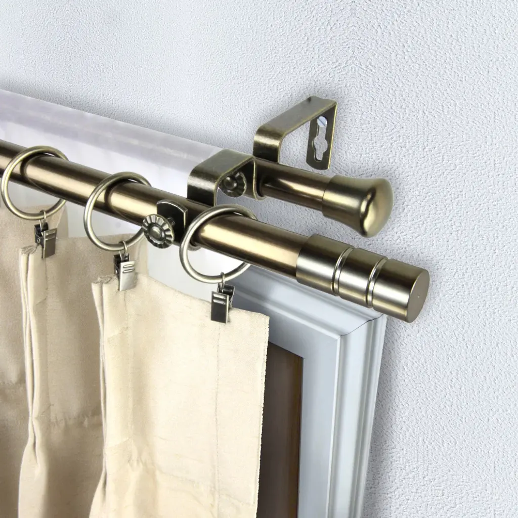 Introduce an elegant touch to your window treatment with this beautiful 13/16" diameter double curtain rod set, made of high quality steel rods. Includes 2 telescoping steel pole, mounting hardware, brackets, and 2 finials Projection: 2.875" Finial measurement: 2.375" W x 1" H x 1" D
