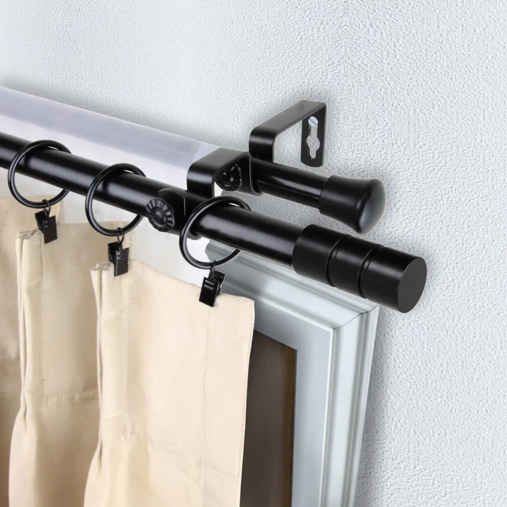 Introduce an elegant touch to your window treatment with this beautiful 13/16" diameter double curtain rod set, made of high quality steel rods. Includes 2 telescoping steel pole, mounting hardware, brackets, and 2 finials Projection: 2.875" Finial measurement: 2.375" W x 1" H x 1" D