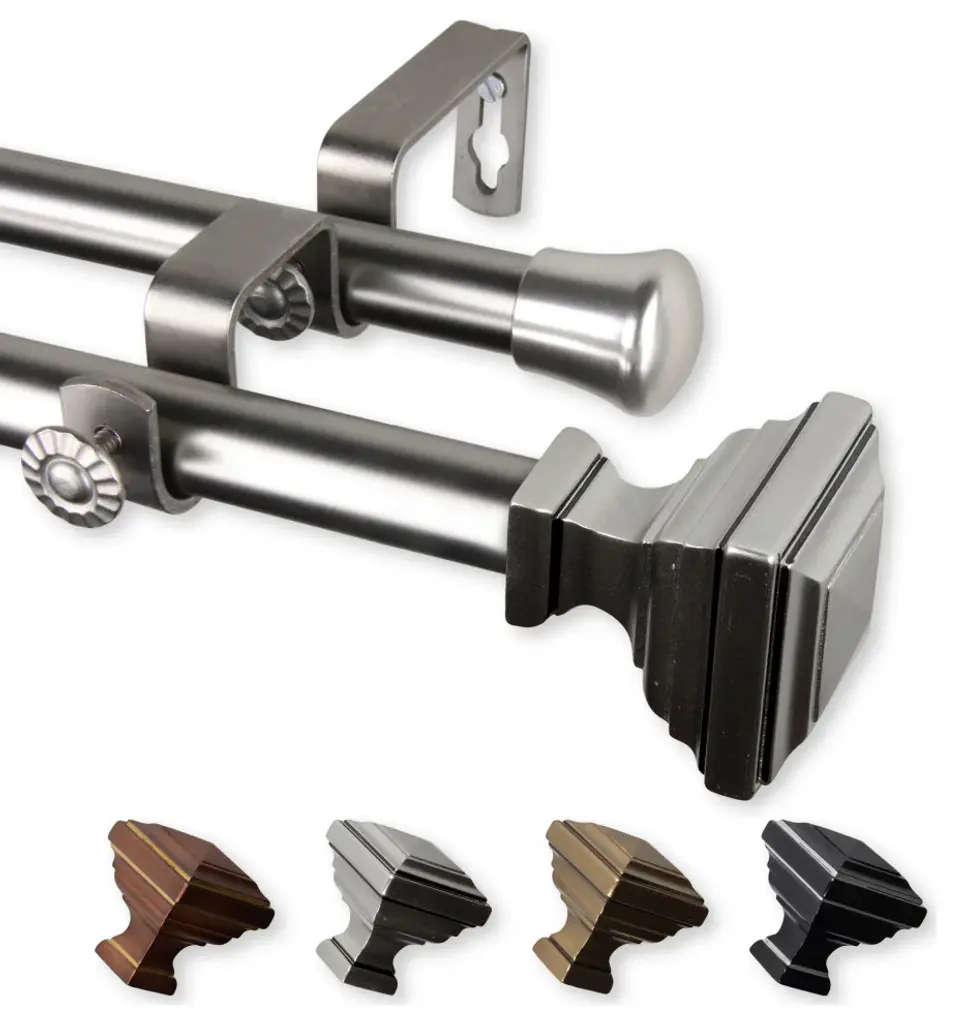 Central Design Products is thrilled to present our top-of-the-line Single Curtain Rods, the ultimate addition to any window treatment. Our high-quality rods are crafted with precision to provide a sleek and modern look to your home decor. Each set includes two 5/8" diameter curtain rods, sturdy mounting brackets, and all necessary mounting hardware. With a projection of 6.25" to front rod, 3.75" to back rod, and a rod diameter of 5/8", our steel rods are built to last. The elegant color of our curtain rods adds a touch of sophistication to your space. Upgrade your window treatment with Central Design Products''Double Curtain Rods today! Includes 2 curtain rods of 5/8" diameter, finials, mounting brackets, and mounting hardware. Size: 28-48" Projection: 6.25" to front rod, 3.75" to back rod Rod Diameter: 5/8" Material: Steel Color: Satin Nickel