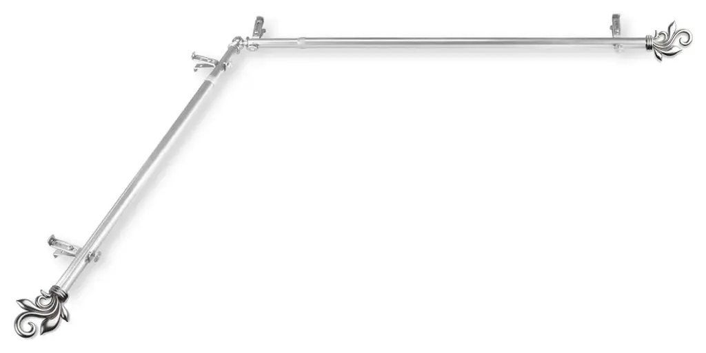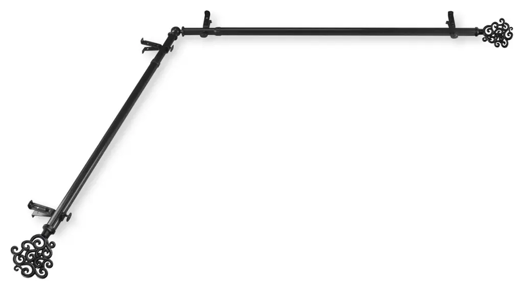 Easily and effortlessly decorate your corner windows with curtains and sheers/valences. 2 sets of two 13/16 in. curtain rods attach via corner ball connector that allows for nearly 360 of rotation. These high quality steel rods are accented with decorative finial end pieces.Includes: four 13/16" in diameter rods, finials, corner connectors, and mounting hardware.Front rod projection: 6.375 in. back rod projection: 3.75 in.Finial Measurement: 3-3/8" W X 3" H x 3/8" DSteel Rod and Metal FinialInstallation instructions included