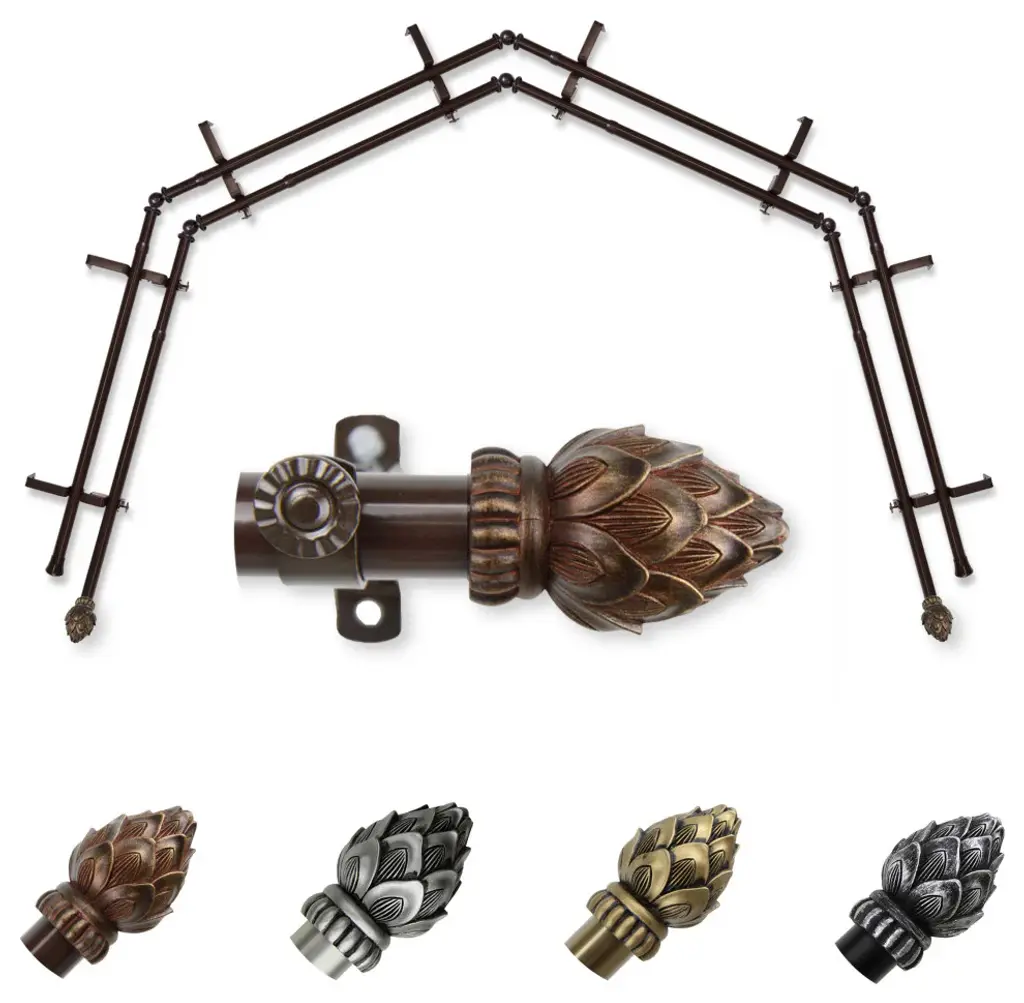 Central Design Products presents the perfect enhancement to your window treatment with high-end quality 4-Sided Double Bay Curtain Rods, Giles edition. Effortlessly style your 4 sided window treatment with these Bay Curtain Rods. Designed to add a modern touch for those tricky bay windows. Includes 8 curtain rods of 13/16" diameter, 8 support brackets, 6 corner connectors, and mounting hardware. Projection: 6.375" Clearance: 3.75" Rod Diameter: 13/16" Material: Steel Color: Black