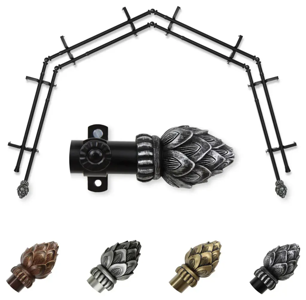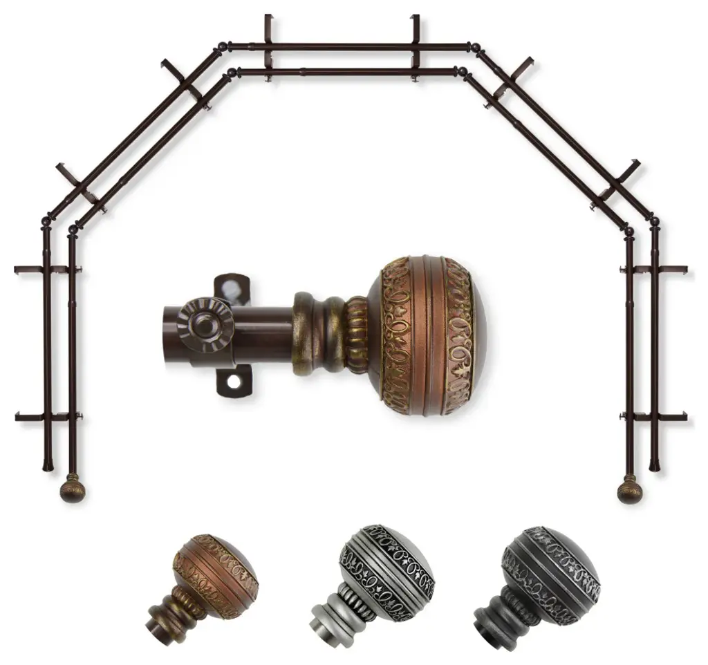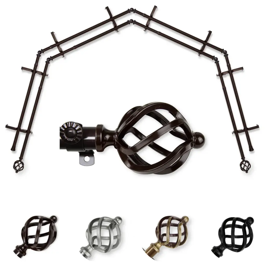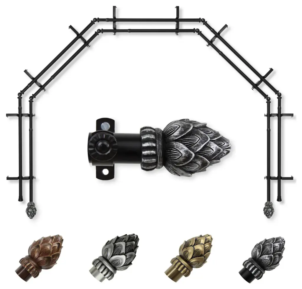 Central Design Products presents the perfect enhancement to your window treatment with high-end quality 4-Sided Double Bay Curtain Rods, Giles edition. Effortlessly style your 4 sided window treatment with these Bay Curtain Rods. Designed to add a modern touch for those tricky bay windows. Includes 8 curtain rods of 13/16" diameter, 8 support brackets, 6 corner connectors, and mounting hardware. Projection: 6.375" Clearance: 3.75" Rod Diameter: 13/16" Material: Steel Color: Black