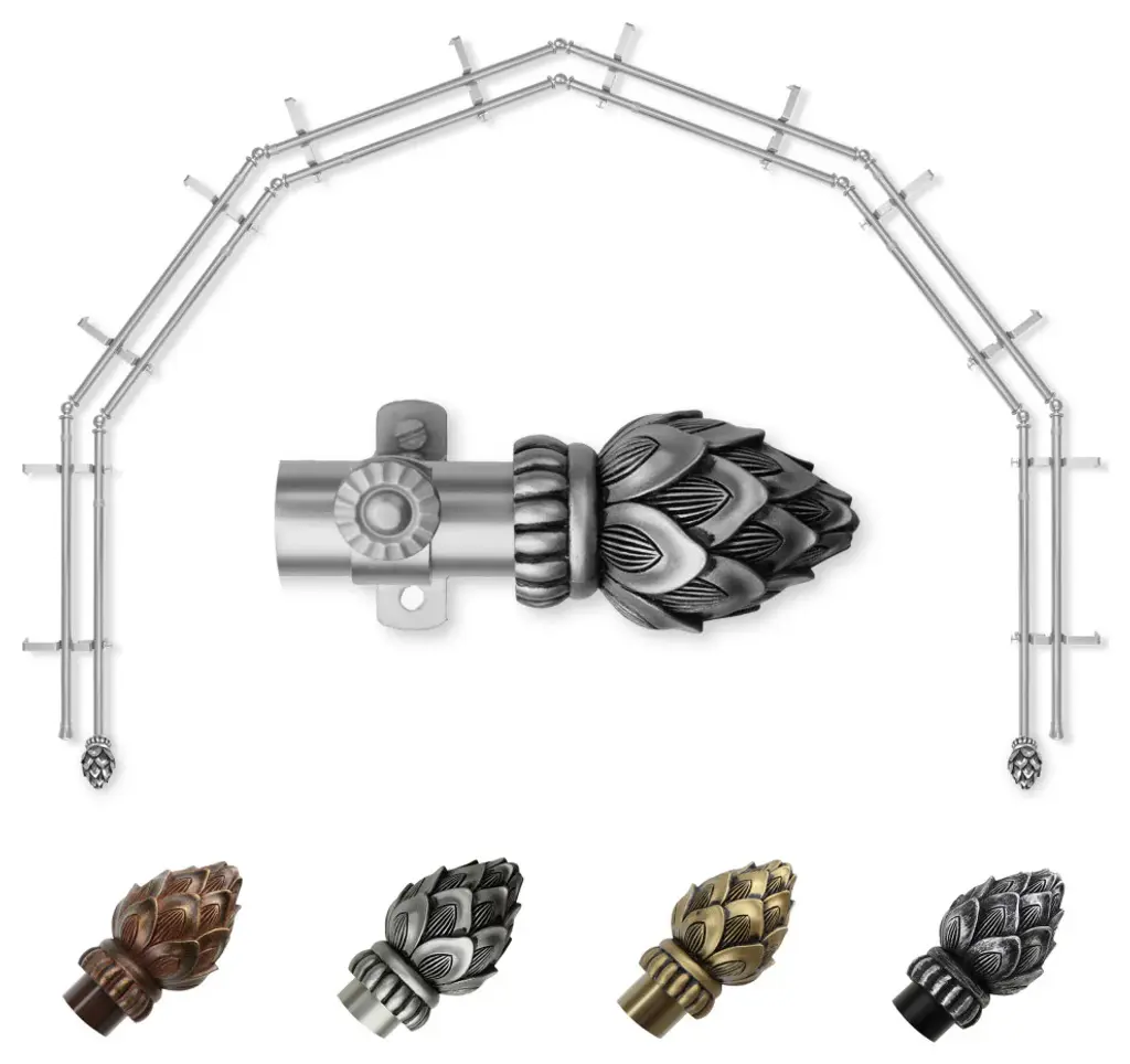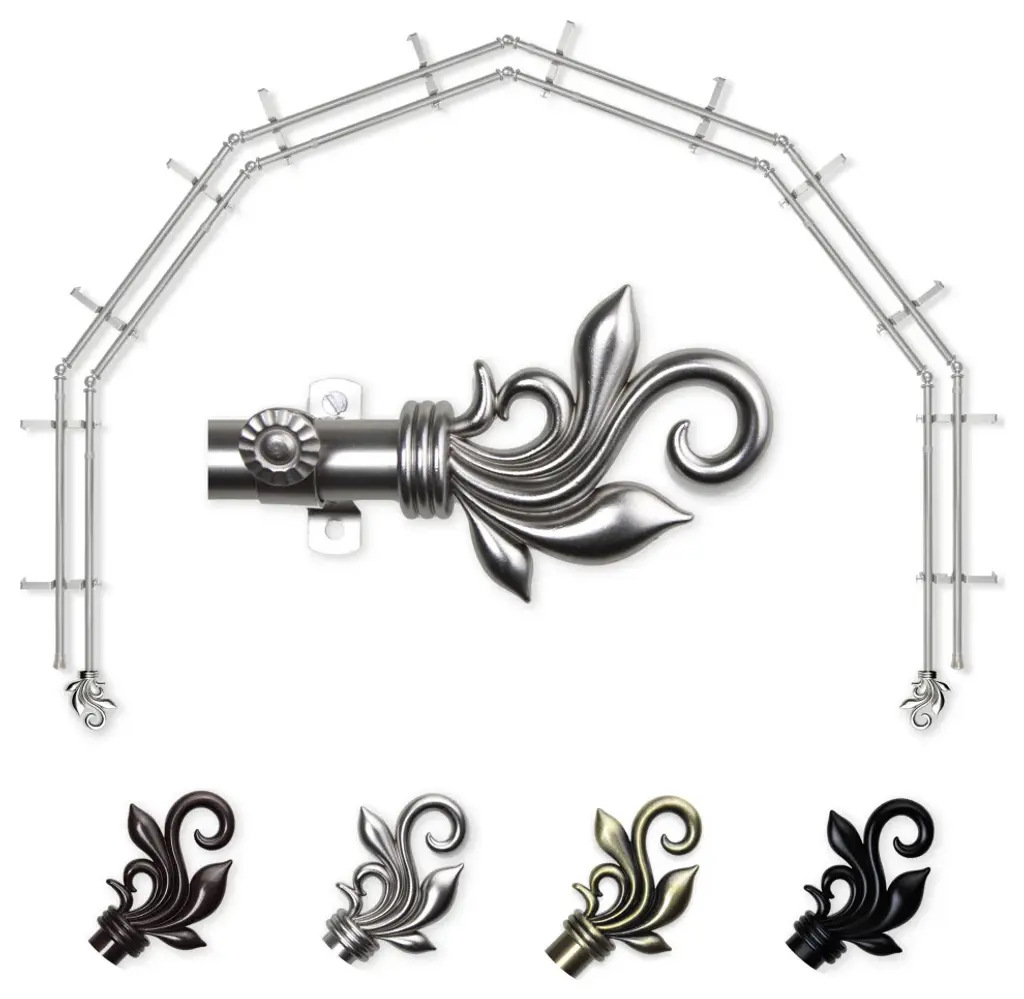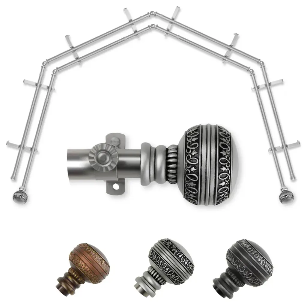 Central Design Products presents the perfect enhancement to your window treatment with high-end quality 4-Sided Double Bay Curtain Rods, Giles edition. Effortlessly style your 4 sided window treatment with these Bay Curtain Rods. Designed to add a modern touch for those tricky bay windows. Includes 8 curtain rods of 13/16" diameter, 8 support brackets, 6 corner connectors, and mounting hardware. Projection: 6.375" Clearance: 3.75" Rod Diameter: 13/16" Material: Steel Color: Black