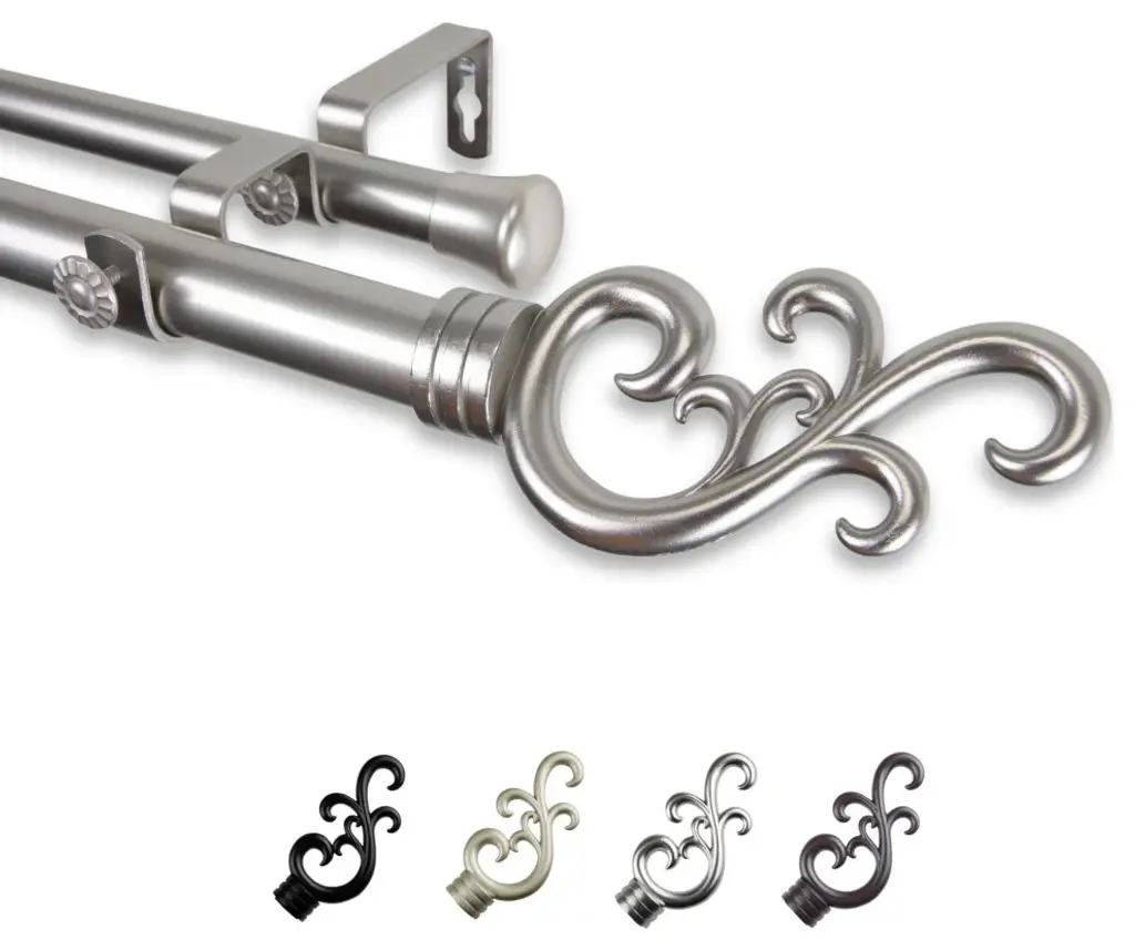 Giles 4-Sided Double Bay Curtain Rod - Satin Nickel