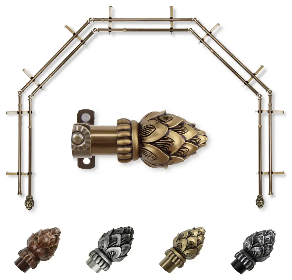 Giles 5-Sided Double Bay Curtain Rod - Antique Brass