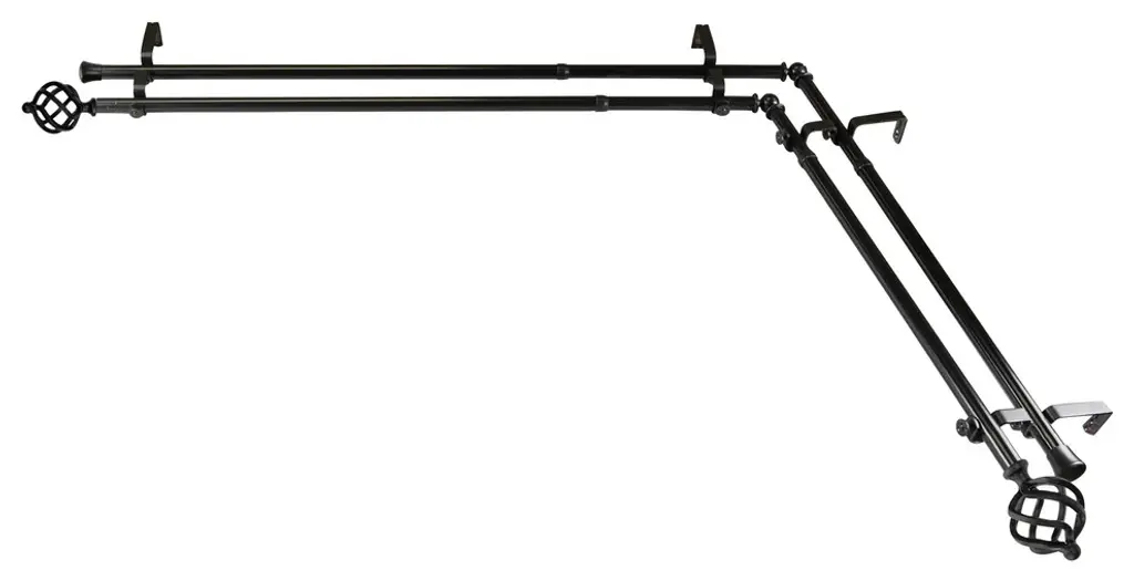Giro 13/16" Corner Window Double Curtain Rod 28-48", Black, Black, 120-170"