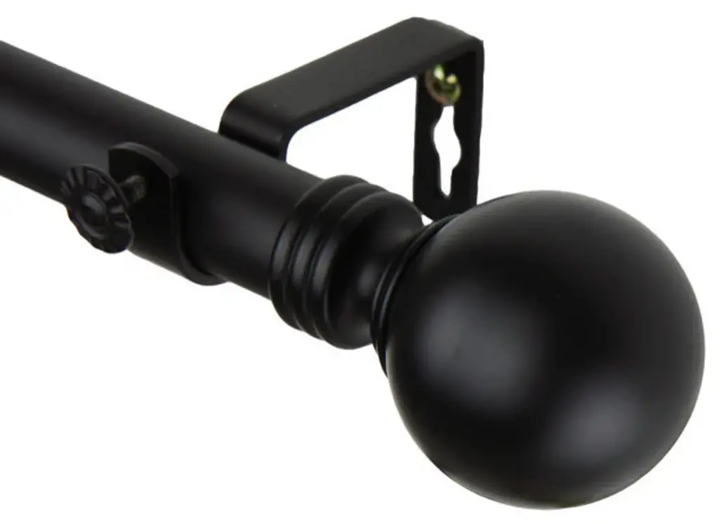 Decorate your window with this Rod Desyne Globe Curtain Rod. This rod is made of solid steel pole while lends a sophiscated touch and finished appeal to your window treatment, regardless of room or drapery style. Features:Includes one 1 inch diameter high quality steel telescoping pole (3 piece), extends 120-170 inch, 4 brackets and 2 finialsEach Globe finial measures W 3 inches x H 2-3/8 inches x D 2-3/8 inchesProjection: 3.625"