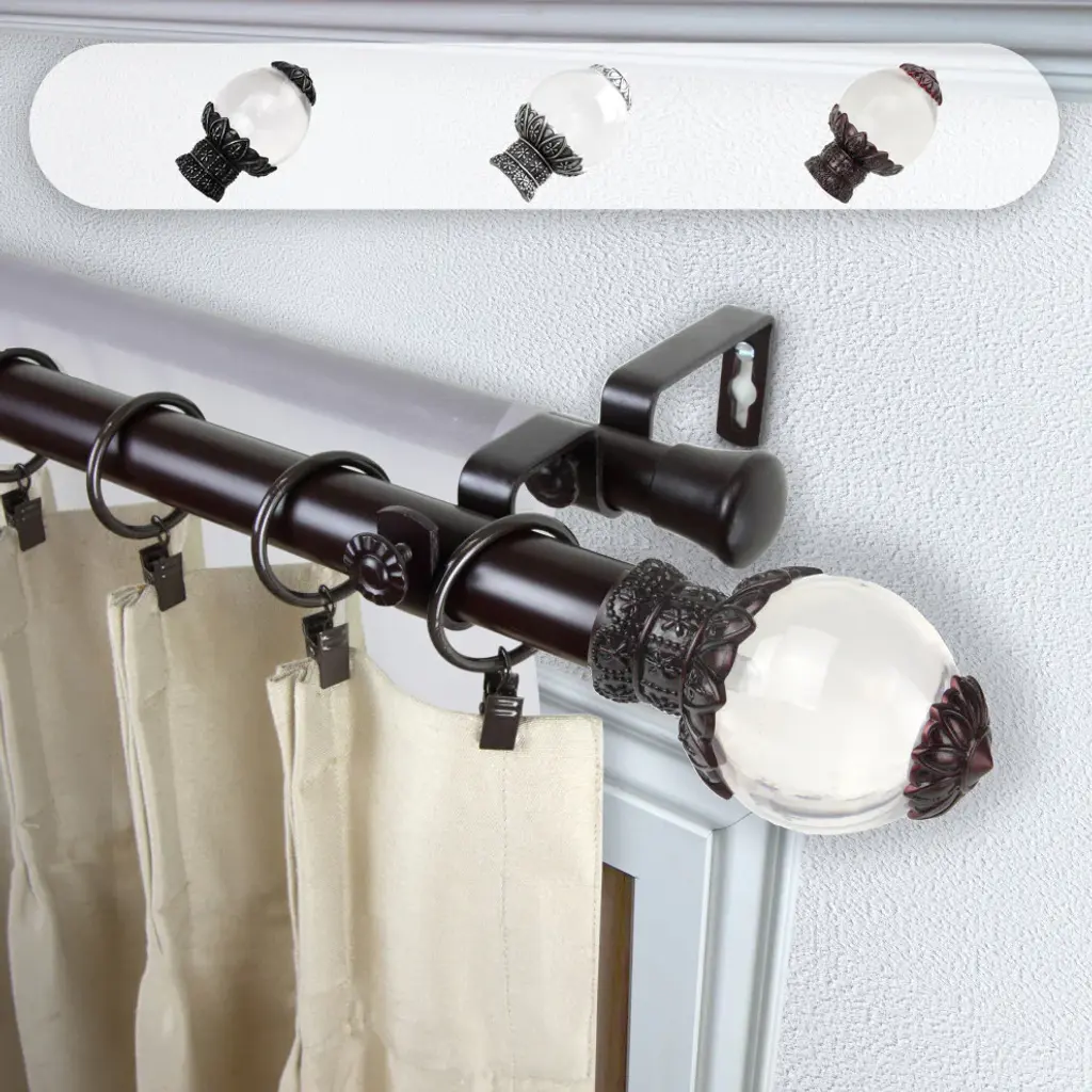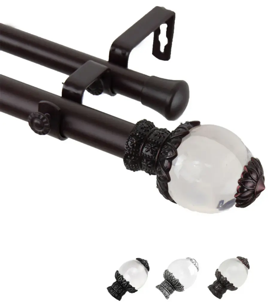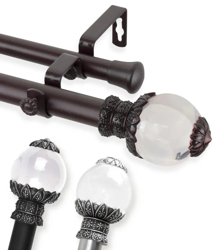Central Design Products is thrilled to present our top-of-the-line Double Curtain Rods, the ultimate addition to any window treatment. Our high-quality rods are crafted with precision to provide a sleek and modern look to your home decor. Each set includes a double curtain rod, finials, sturdy mounting brackets, and all necessary mounting hardware. The elegant color of our curtain rods adds a touch of sophistication to your space. Upgrade your window treatment with Central Design Products'' Double Curtain Rods today! Includes 1 curtain rod of 1" diameter, one curtain rod of 13/16" diameter, finials, endcaps, mounting brackets, and mounting hardware. Size: 160-240" Projection: 6.75" Front Rod Diameter: 1" / Back Rod Diameter: 13/16" Material: Steel