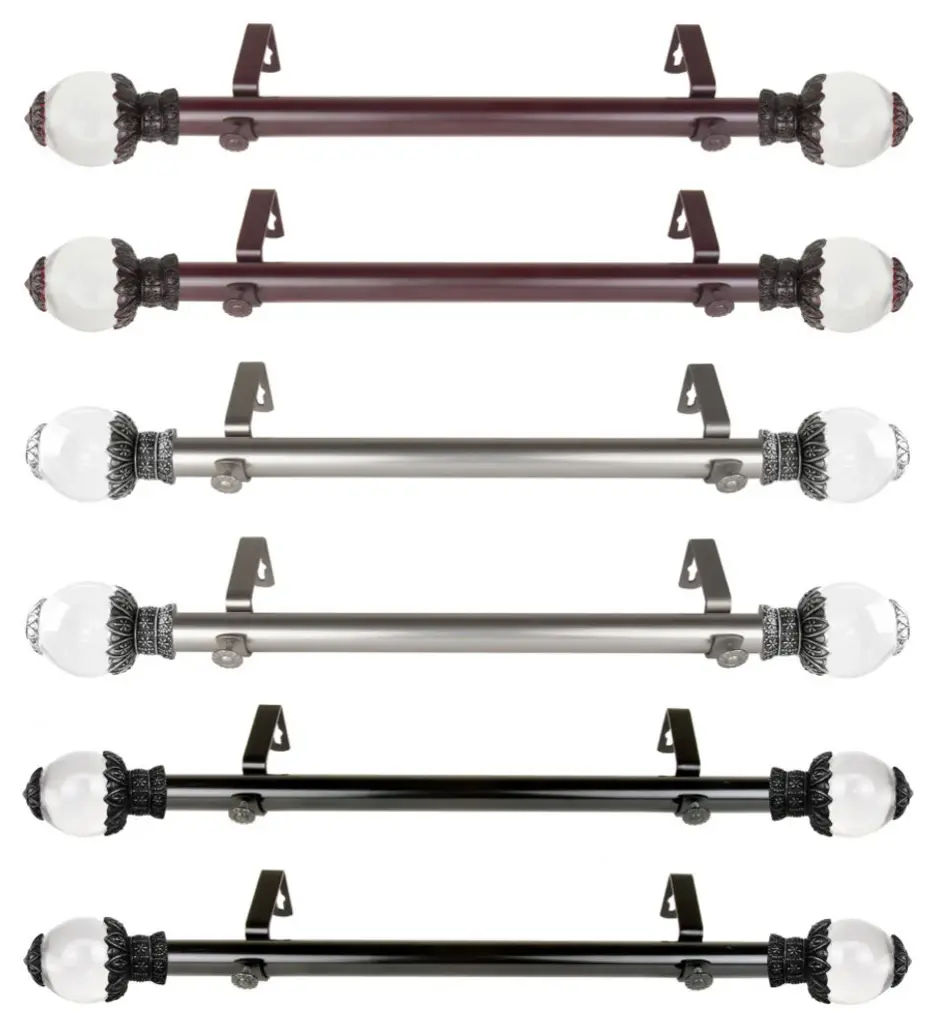 Central Design Products is thrilled to present our side curtain rods, which will add alluring style and refined touch to your window treatment and home decor. Add a nice touch to each side of your beautiful window to apply a modern and unique look in your living space. Includes two 1" diameter telescoping rods, four finials, four side mount brackets and mounting hardware. Size: 12-20" Projection: 3.625" Steel Rod