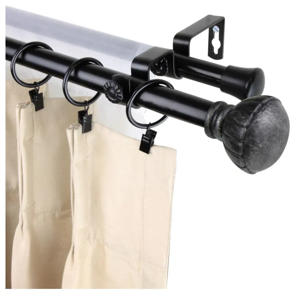 Introduce an elegant touch to your window treatment with this beautiful 13/16" diameter double curtain rod set, made of high quality steel rods. Includes 2 telescoping steel pole, mounting hardware, brackets, and 2 finials Projection: 2.875" Finial measurement: 2.5" W x 2.125" H x 2.125" D