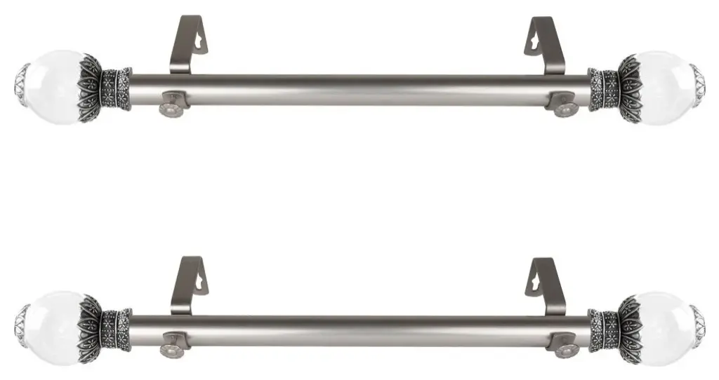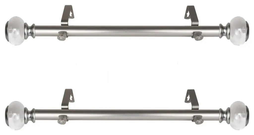 This side mount curtain rod will add alluring style and refined touch to your window treatment and home decorIncludes two 1" diameter telescoping 12-20 inches rod, four finials, four side mount brackets and mounting hardwareFinial Measurement: 2-1/2" W x 2-3/4" H x 2-3/4" DBracket Projection: 3.625 inchesInstallation instructions includedSteel Rod and Resin Finials