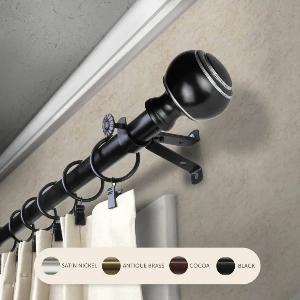 Central Design Products presents the perfect enhancement to your window treatment with high-end quality Single Curtain Rods. Designed to add a modern touch to any window. Includes 1 curtain rod of 13/16" diameter, 4 brackets, and mounting hardware. Projection: 2.875" Rod Diameter: 13/16" Material: Steel Color: Black