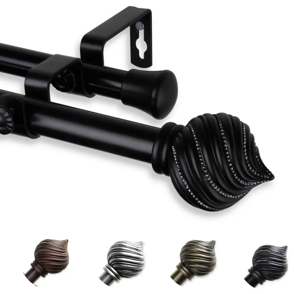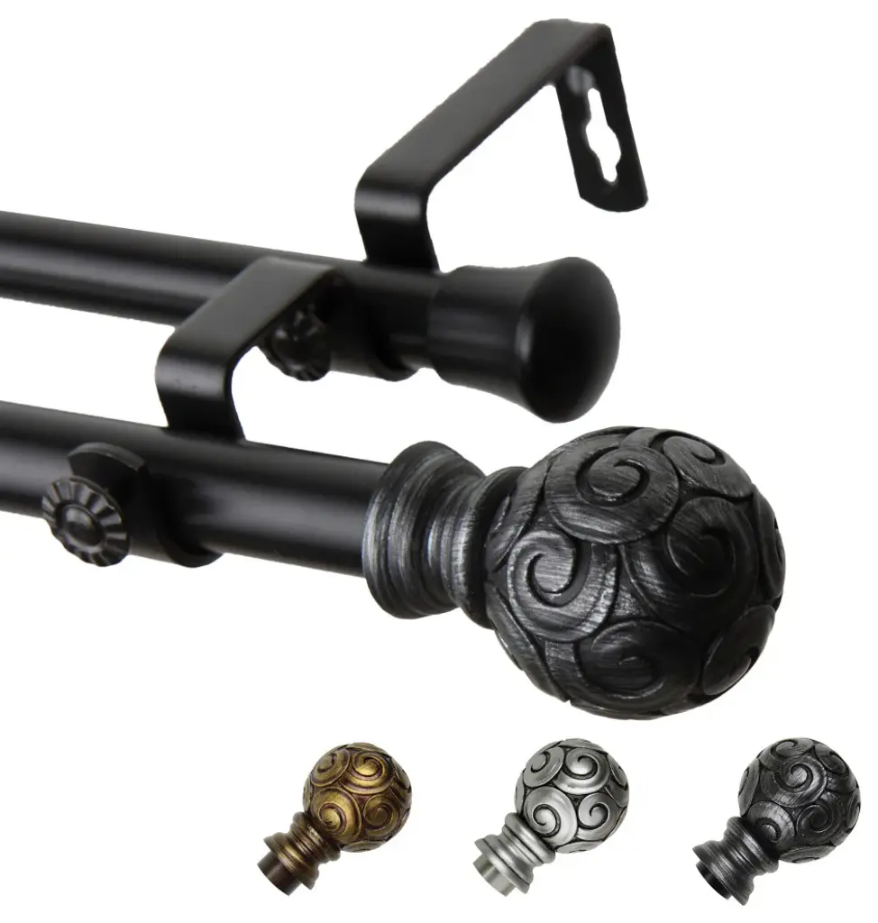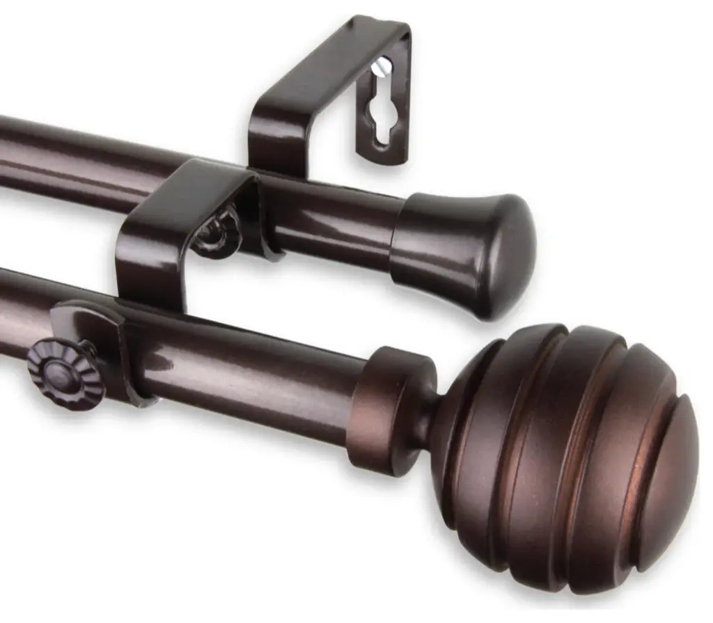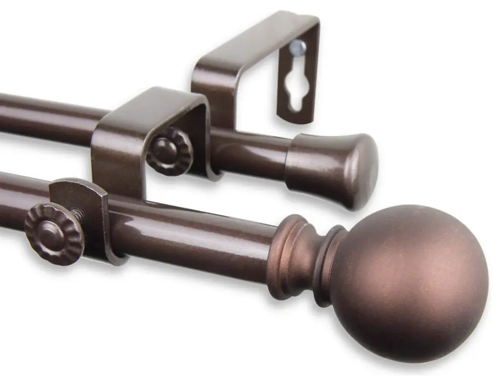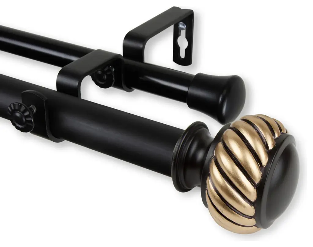 Central Design Products presents the perfect enhancement to your window treatment with high-end quality Double Curtain Rods. Designed to add a modern touch to any window. Includes 2 curtain rods of 13/16" diameter, 2 brackets, and mounting hardware. Projection: 6.375" Front rod to wall, 3.75" Back rod to wall Rod Diameter: 13/16" Material: Steel Color: Black