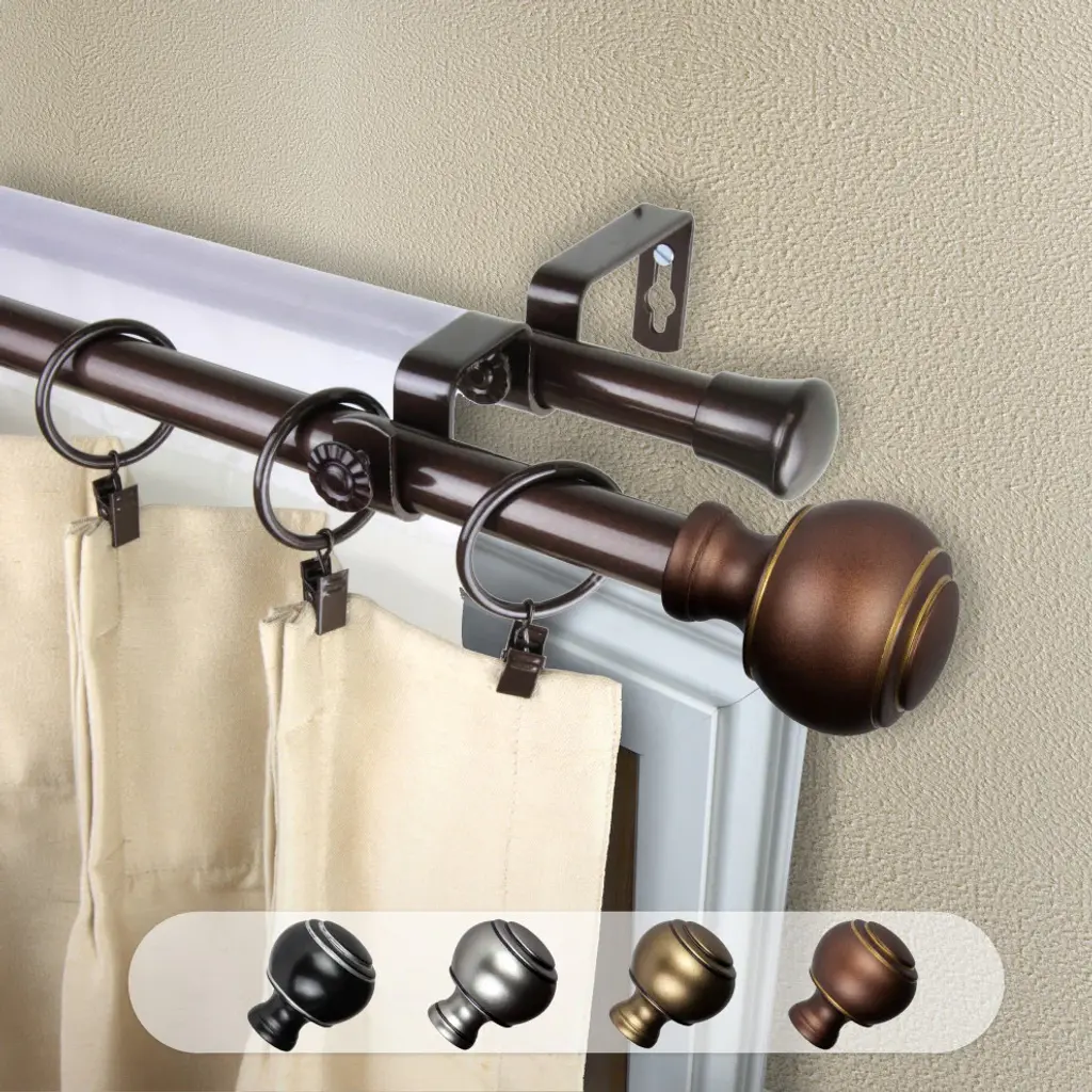Central Design Products presents the perfect enhancement to your window treatment with high-end quality Double Curtain Rods. Designed to add a modern touch to any window. Includes 2 curtain rods of 13/16" diameter, 4 brackets, and mounting hardware. Projection: 6.375" Front rod to wall, 3.75" Back rod to wall Rod Diameter: 13/16" Material: Steel Color: Cocoa