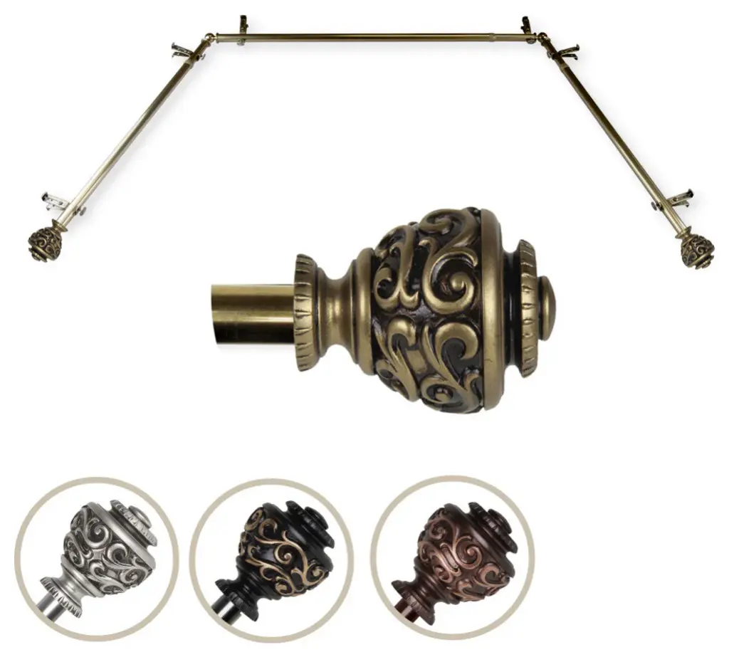 Harmony 13/16" Bay Window Curtain Rod, Antique Brass