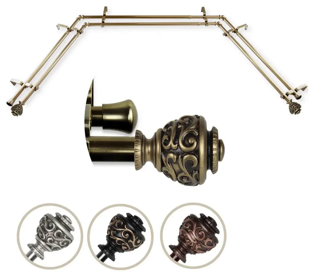 Harmony 13/16" Bay Window Double Curtain Rod, Antique Brass