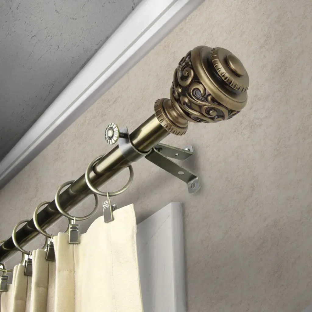 Add a sophisticated touch to your window treatment with a 13/16" diameter curtain rod set. Made of high quality steel rods and resin finials. Includes one 66-120 inches telescoping steel pole 3 brackets and 2 finialsProjection: 2.875"Finial measurement: 2.875" W x 2.5" H x 2.5" DRod Diameter: 13/16 inch