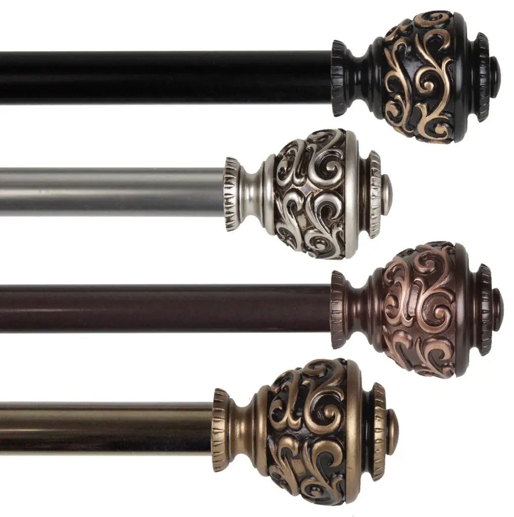 Add a sophisticated touch to your window treatment with a 13/16" diameter curtain rod set. Made of high quality steel rods and resin finials.