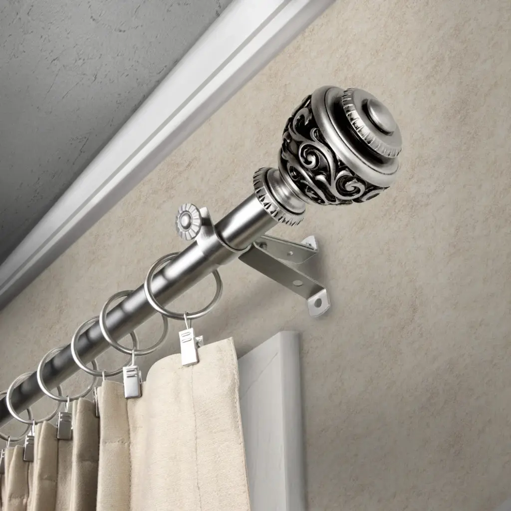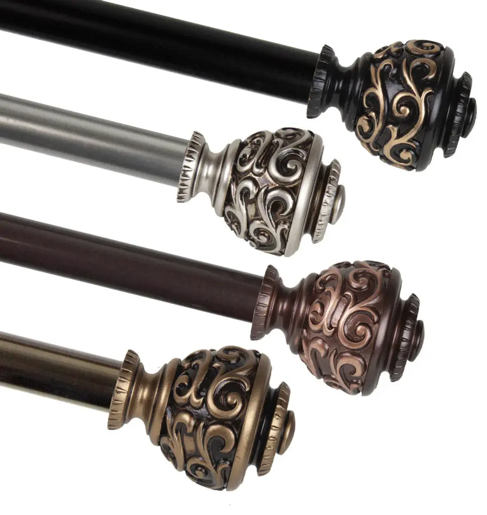 Add a sophisticated touch to your window treatment with a 13/16" diameter curtain rod set. Made of high quality steel rods and resin finials. Includes one 48-84 inches telescoping steel pole 3 brackets and 2 finialsProjection: 2.875"Finial measurement: 2.875" W x 2.5" H x 2.5" DRod Diameter: 13/16 inch
