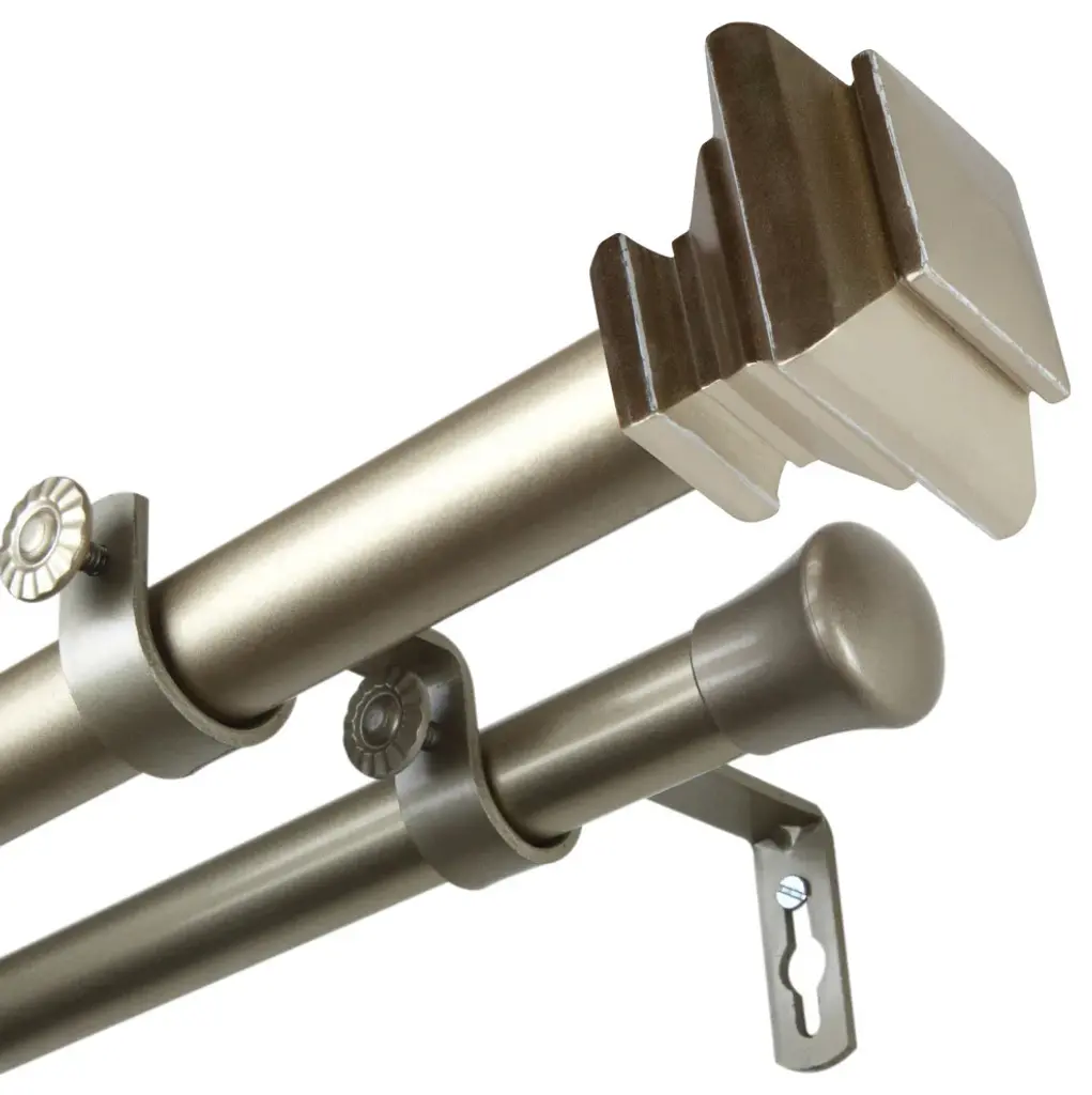 Central Design Products is thrilled to present our top-of-the-line Double Curtain Rods, the ultimate addition to any window treatment. Our high-quality rods are crafted with precision to provide a sleek and modern look to your home decor. Each set includes a double curtain rod, finials, sturdy mounting brackets, and all necessary mounting hardware. The elegant color of our curtain rods adds a touch of sophistication to your space. Upgrade your window treatment with Central Design Products'' Double Curtain Rods today! Includes 1 curtain rod of 1" diameter, one curtain rod of 13/16" diameter, finials, endcaps, mounting brackets, and mounting hardware. Size: 66-120" Projection: 6.75" Front Rod Diameter: 1" / Back Rod Diameter: 13/16" Material: Steel