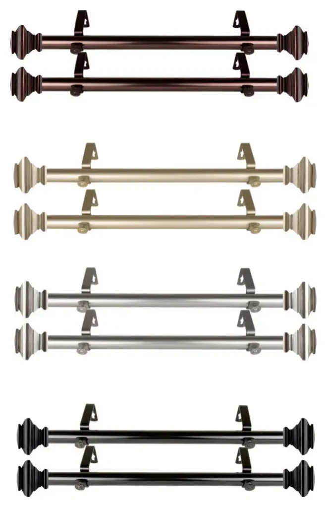 Central Design Products is thrilled to present our side curtain rods, which will add alluring style and refined touch to your window treatment and home decor. Add a nice touch to each side of your beautiful window to apply a modern and unique look in your living space. Includes two 1" diameter telescoping rods, four finials, four side mount brackets and mounting hardware. Size: 12-20" Projection: 3.625" Steel Rod