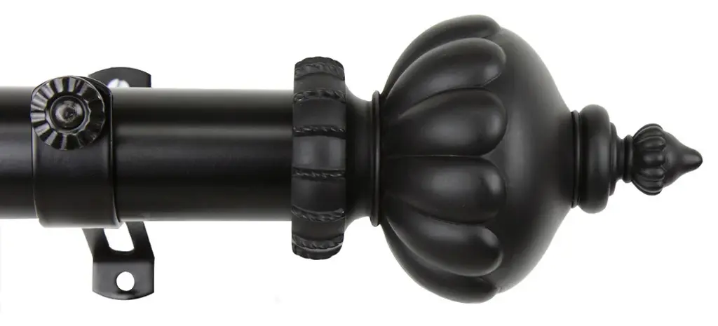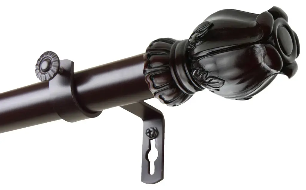 Includes: 1 Rod, Brackets, 2 Finials, and Mounting Hardware. Projection: 4.5" Steel Rod and Resin Finial. Finial measures: 4.5" x 3" x 3" Rod Brackets: 4-8'' (2), 9-12'' (3), 13-16'' (4)