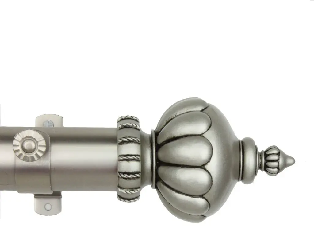 Rod Desyne is pleased to introduce our designer-looking Imperial Drapery Rod. This elegant drapery rod will add alluring style and refined touch to your window treatment and home deocr.Features:Includes one 1.5 inch diameter adjustable pole, extends 66-115 inch, 3 brackets, finials, and mounting hardwareEach Imperial finial measures L 4.5" x H 3" x D 3"Projection: 4.5"