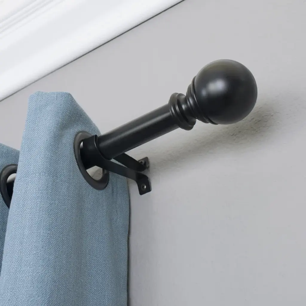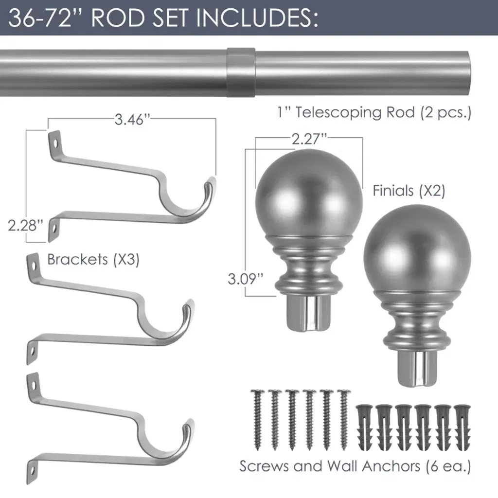 Put the focus on the finish with this adjustable curtain rod set with cap finials. The understated styling with rich finish color will compliment a variety of home decor. Metal construction 1" diameter drapery rods and matching metal mounting brackets provide durability and support for your drapery panels. Adjustable telescoping rod design allows for a custom fit.