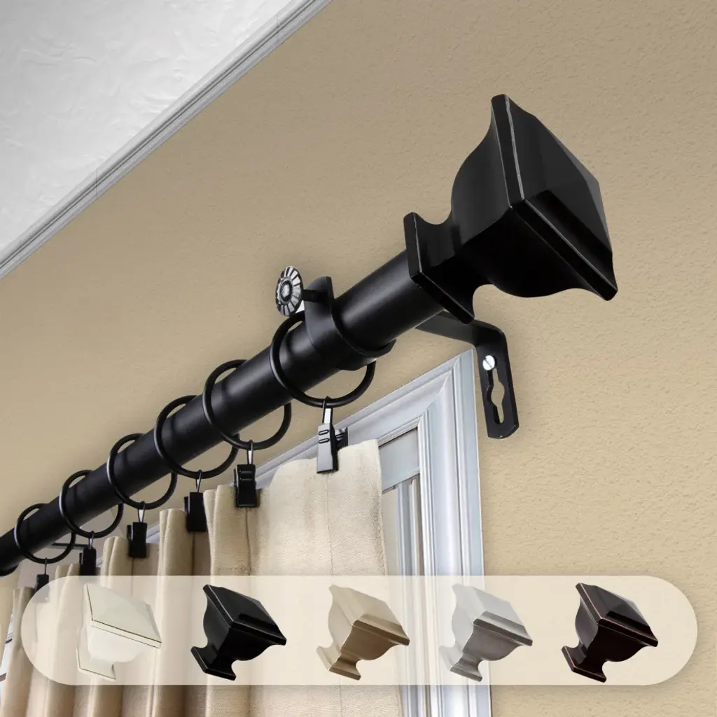 Central Design Products is thrilled to present our top-of-the-line Single Curtain Rods, the ultimate addition to any window treatment. Our high-quality rods are crafted with precision to provide a sleek and modern look to your home decor. Each set includes a single curtain rod, finials, sturdy mounting brackets, and all necessary mounting hardware. The elegant color of our curtain rods adds a touch of sophistication to your space. Upgrade your window treatment with Central Design Products'' Single Curtain Rods today! Includes 1 curtain rod of 1" diameter, finials, mounting brackets, and mounting hardware. Size: 48-84" Projection: 3.625" Rod Diameter: 1" Material: Steel