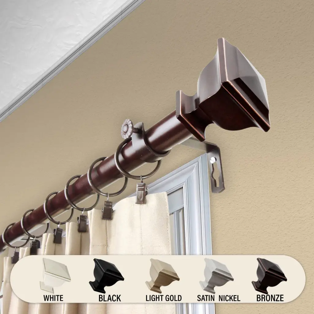 Central Design Products is thrilled to present our top-of-the-line Single Curtain Rods, the ultimate addition to any window treatment. Our high-quality rods are crafted with precision to provide a sleek and modern look to your home decor. Each set includes a single curtain rod, finials, sturdy mounting brackets, and all necessary mounting hardware. The elegant color of our curtain rods adds a touch of sophistication to your space. Upgrade your window treatment with Central Design Products'' Single Curtain Rods today! Includes 1 curtain rod of 1" diameter, finials, mounting brackets, and mounting hardware. Size: 66-120" Projection: 3.625" Rod Diameter: 1" Material: Steel