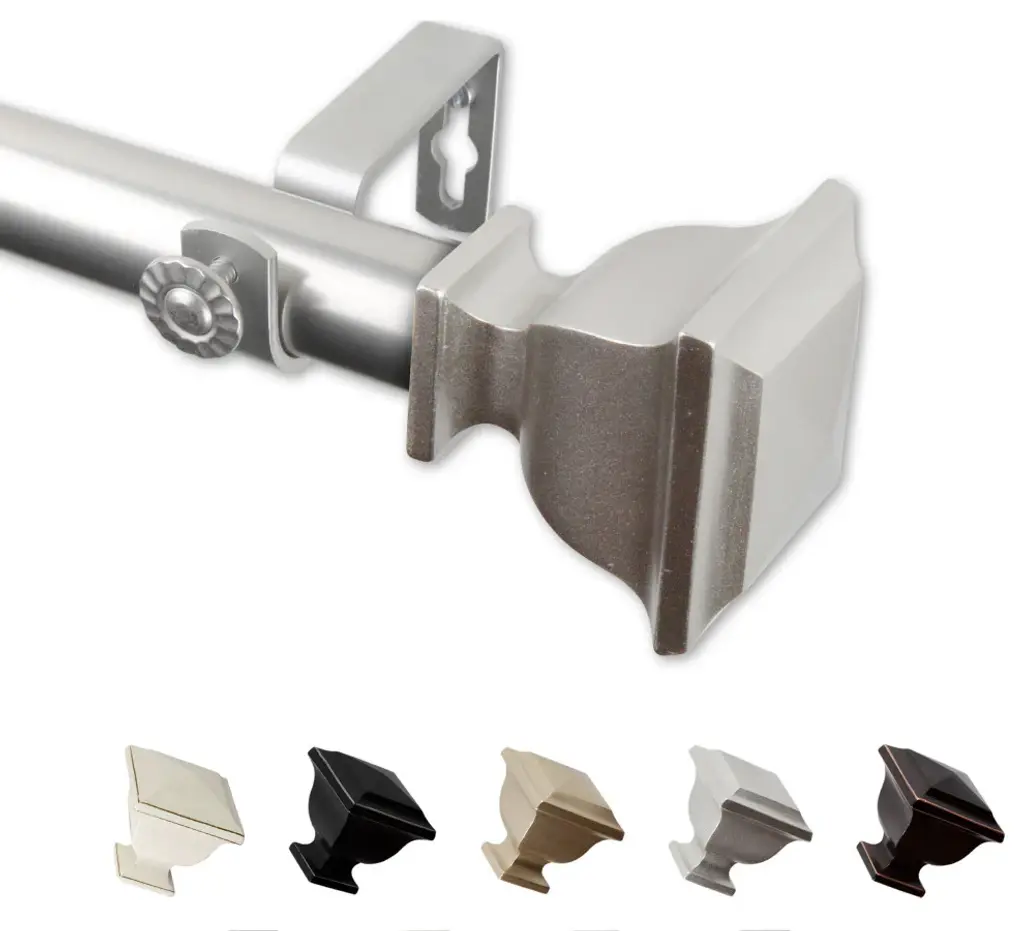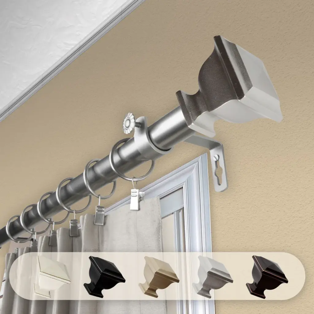 Central Design Products is thrilled to present our top-of-the-line Single Curtain Rods, the ultimate addition to any window treatment. Our high-quality rods are crafted with precision to provide a sleek and modern look to your home decor. Each set includes a single curtain rod, finials, sturdy mounting brackets, and all necessary mounting hardware. The elegant color of our curtain rods adds a touch of sophistication to your space. Upgrade your window treatment with Central Design Products'' Single Curtain Rods today! Includes 1 curtain rod of 1" diameter, finials, mounting brackets, and mounting hardware. Size: 28-48" Projection: 3.625" Rod Diameter: 1" Material: Steel
