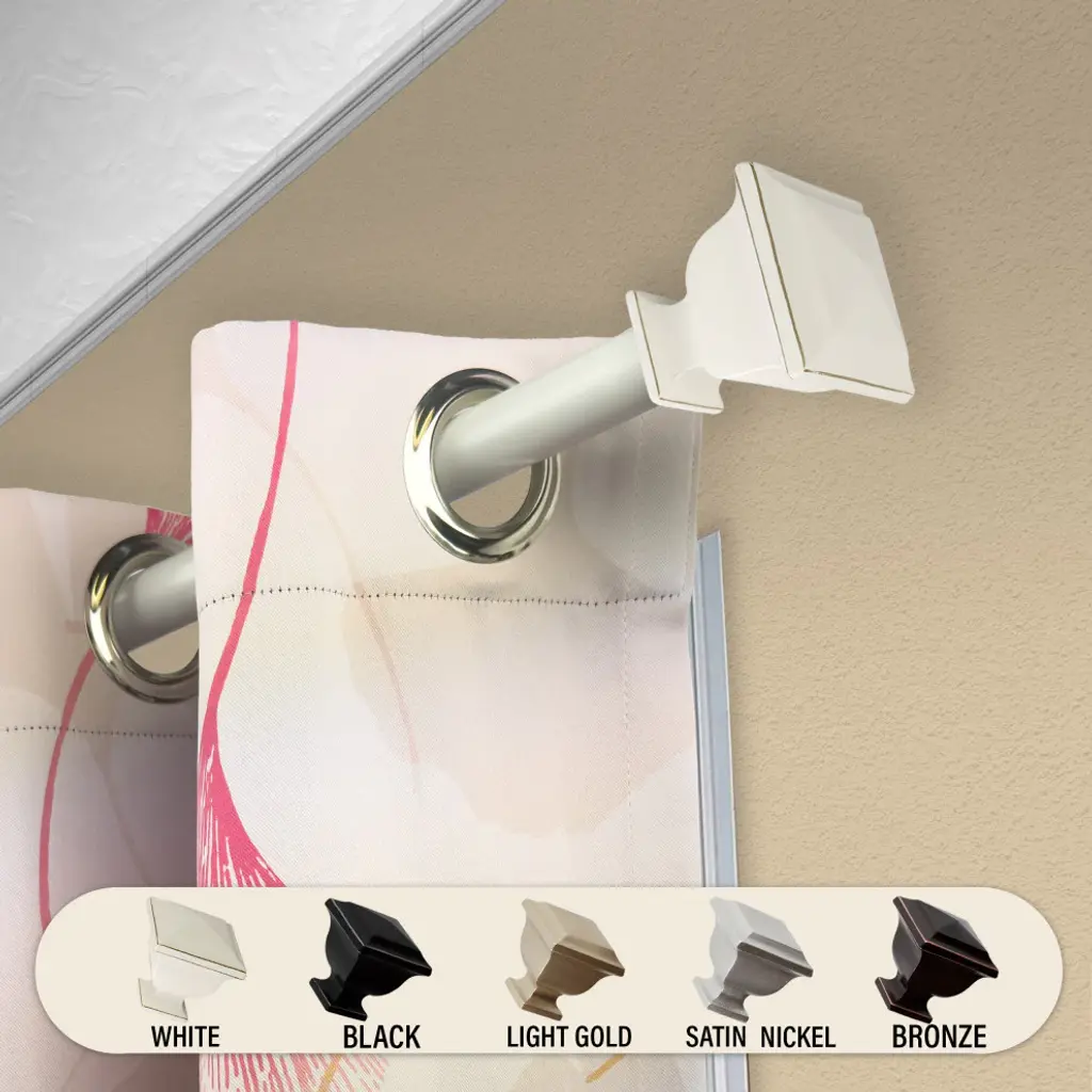 Central Design Products is thrilled to present our top-of-the-line Single Curtain Rods, the ultimate addition to any window treatment. Our high-quality rods are crafted with precision to provide a sleek and modern look to your home decor. Each set includes a single curtain rod, finials, sturdy mounting brackets, and all necessary mounting hardware. The elegant color of our curtain rods adds a touch of sophistication to your space. Upgrade your window treatment with Central Design Products'' Single Curtain Rods today! Includes 1 curtain rod of 1" diameter, finials, mounting brackets, and mounting hardware. Size: 28-48" Projection: 3.625" Rod Diameter: 1" Material: Steel