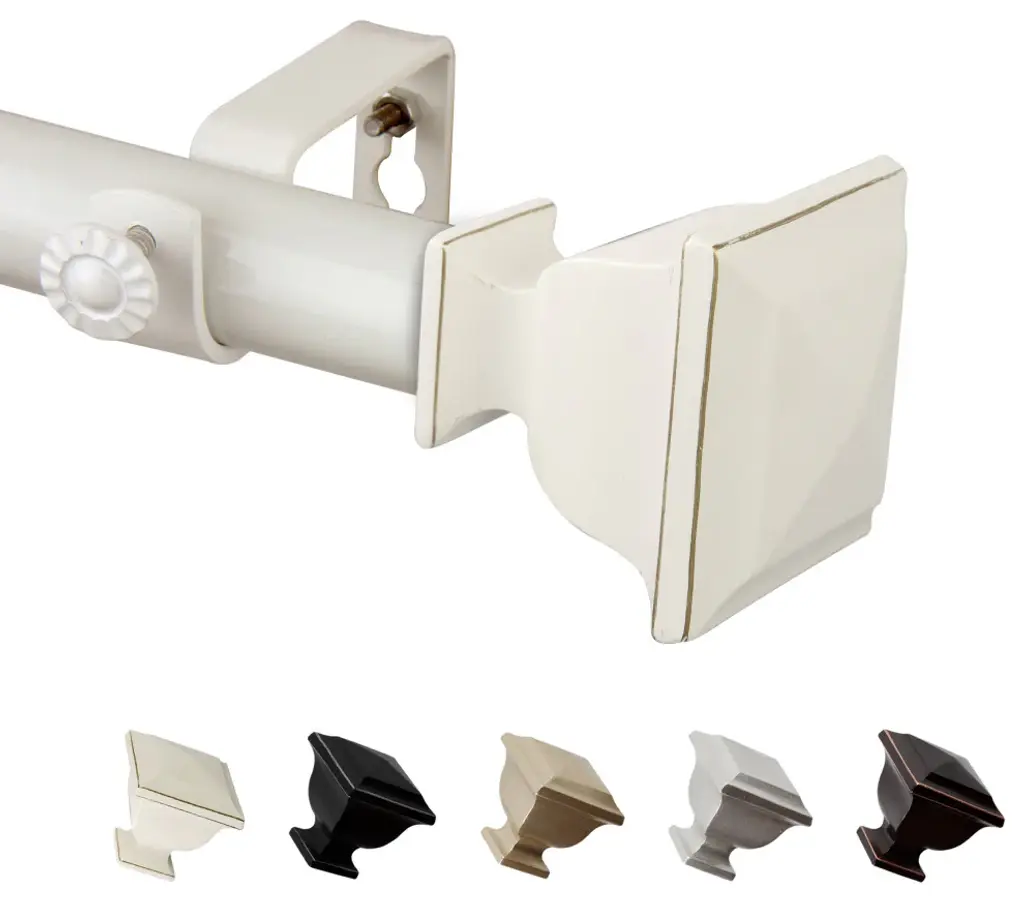 Central Design Products is thrilled to present our top-of-the-line Single Curtain Rods, the ultimate addition to any window treatment. Our high-quality rods are crafted with precision to provide a sleek and modern look to your home decor. Each set includes a single curtain rod, finials, sturdy mounting brackets, and all necessary mounting hardware. The elegant color of our curtain rods adds a touch of sophistication to your space. Upgrade your window treatment with Central Design Products'' Single Curtain Rods today! Includes 1 curtain rod of 1" diameter, finials, mounting brackets, and mounting hardware. Size: 66-120" Projection: 3.625" Rod Diameter: 1" Material: Steel