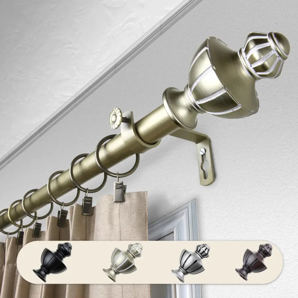 Central Design Products is thrilled to present our top-of-the-line Single Curtain Rods, the ultimate addition to any window treatment. Our high-quality rods are crafted with precision to provide a sleek and modern look to your home decor. Each set includes a single curtain rod, finials, sturdy mounting brackets, and all necessary mounting hardware. The elegant color of our curtain rods adds a touch of sophistication to your space. Upgrade your window treatment with Central Design Products'' Single Curtain Rods today! Includes 1 curtain rod of 1" diameter, finials, mounting brackets, and mounting hardware. Size: 120-170" Projection: 3.625" Rod Diameter: 1" Material: Steel