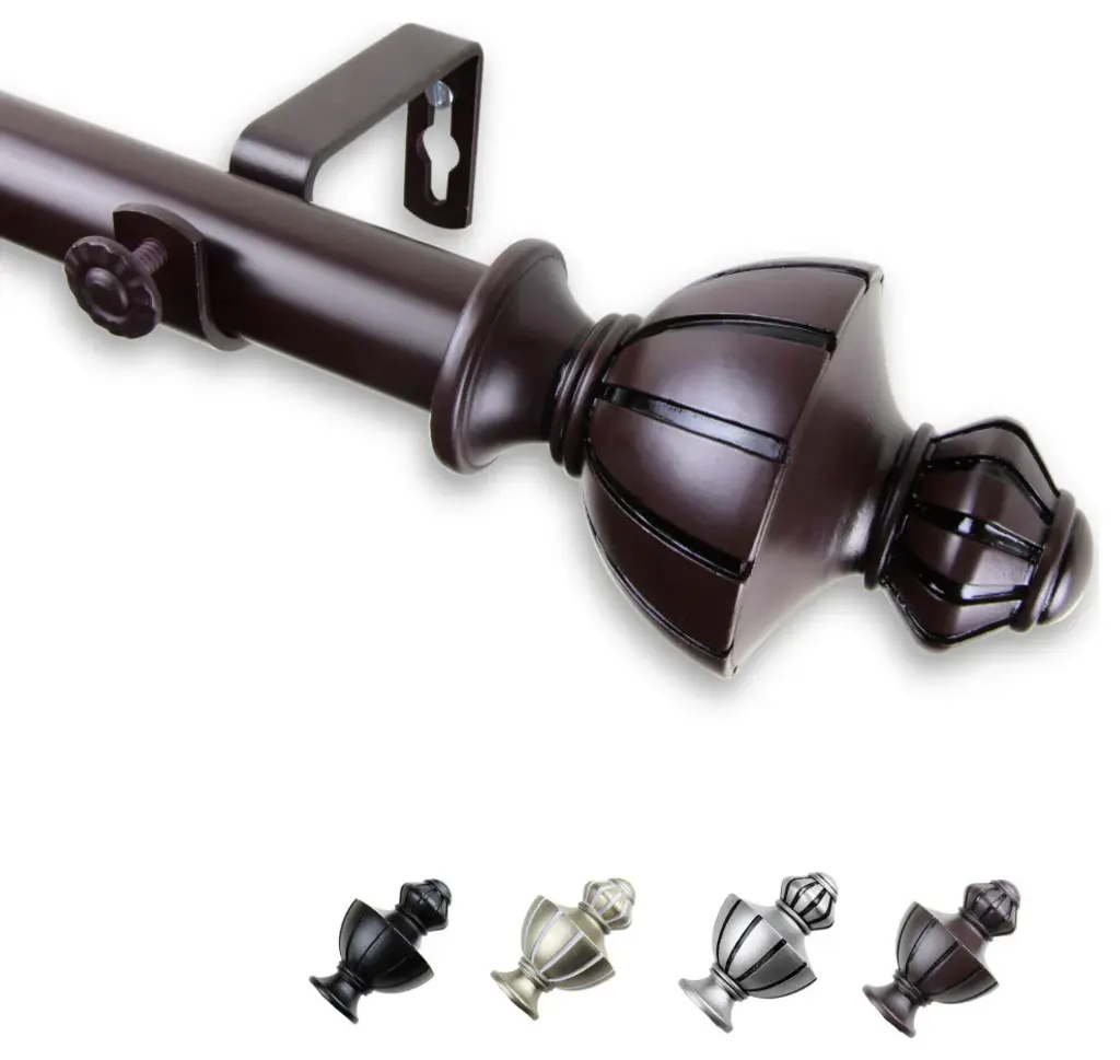 Central Design Products is thrilled to present our top-of-the-line Single Curtain Rods, the ultimate addition to any window treatment. Our high-quality rods are crafted with precision to provide a sleek and modern look to your home decor. Each set includes a single curtain rod, finials, sturdy mounting brackets, and all necessary mounting hardware. The elegant color of our curtain rods adds a touch of sophistication to your space. Upgrade your window treatment with Central Design Products'' Single Curtain Rods today! Includes 1 curtain rod of 1" diameter, finials, mounting brackets, and mounting hardware. Size: 28-48" Projection: 3.625" Rod Diameter: 1" Material: Steel