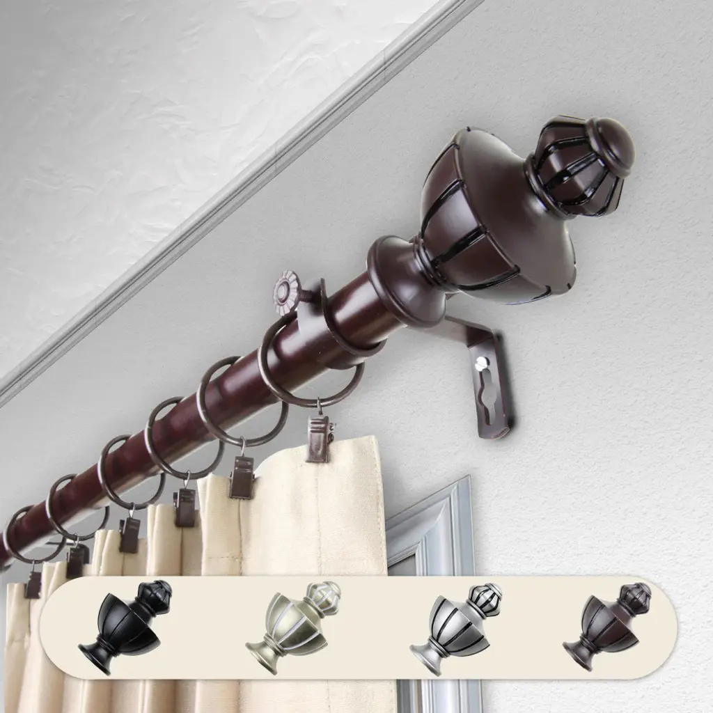 Central Design Products is thrilled to present our top-of-the-line Single Curtain Rods, the ultimate addition to any window treatment. Our high-quality rods are crafted with precision to provide a sleek and modern look to your home decor. Each set includes a single curtain rod, finials, sturdy mounting brackets, and all necessary mounting hardware. The elegant color of our curtain rods adds a touch of sophistication to your space. Upgrade your window treatment with Central Design Products'' Single Curtain Rods today! Includes 1 curtain rod of 1" diameter, finials, mounting brackets, and mounting hardware. Size: 48-84" Projection: 3.625" Rod Diameter: 1" Material: Steel