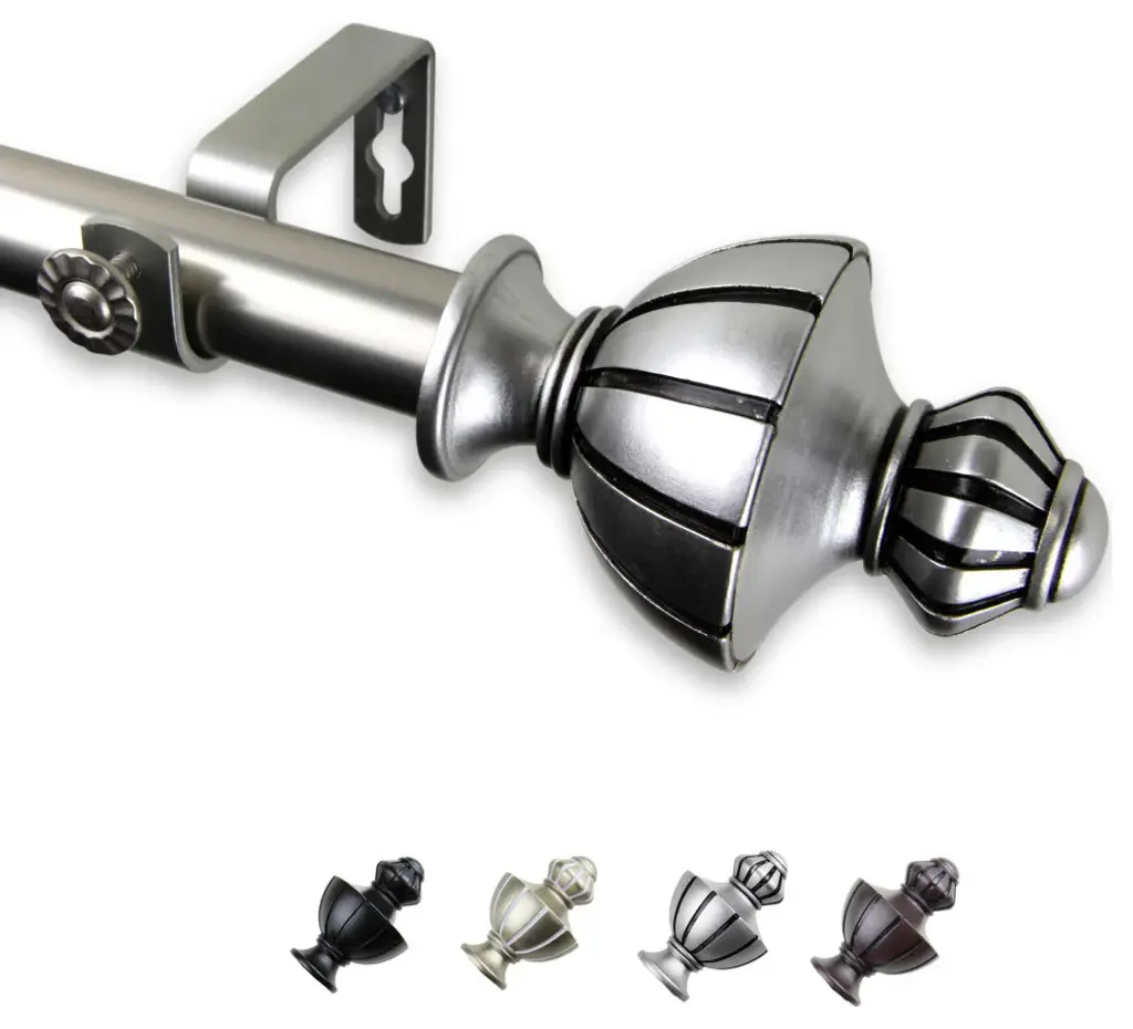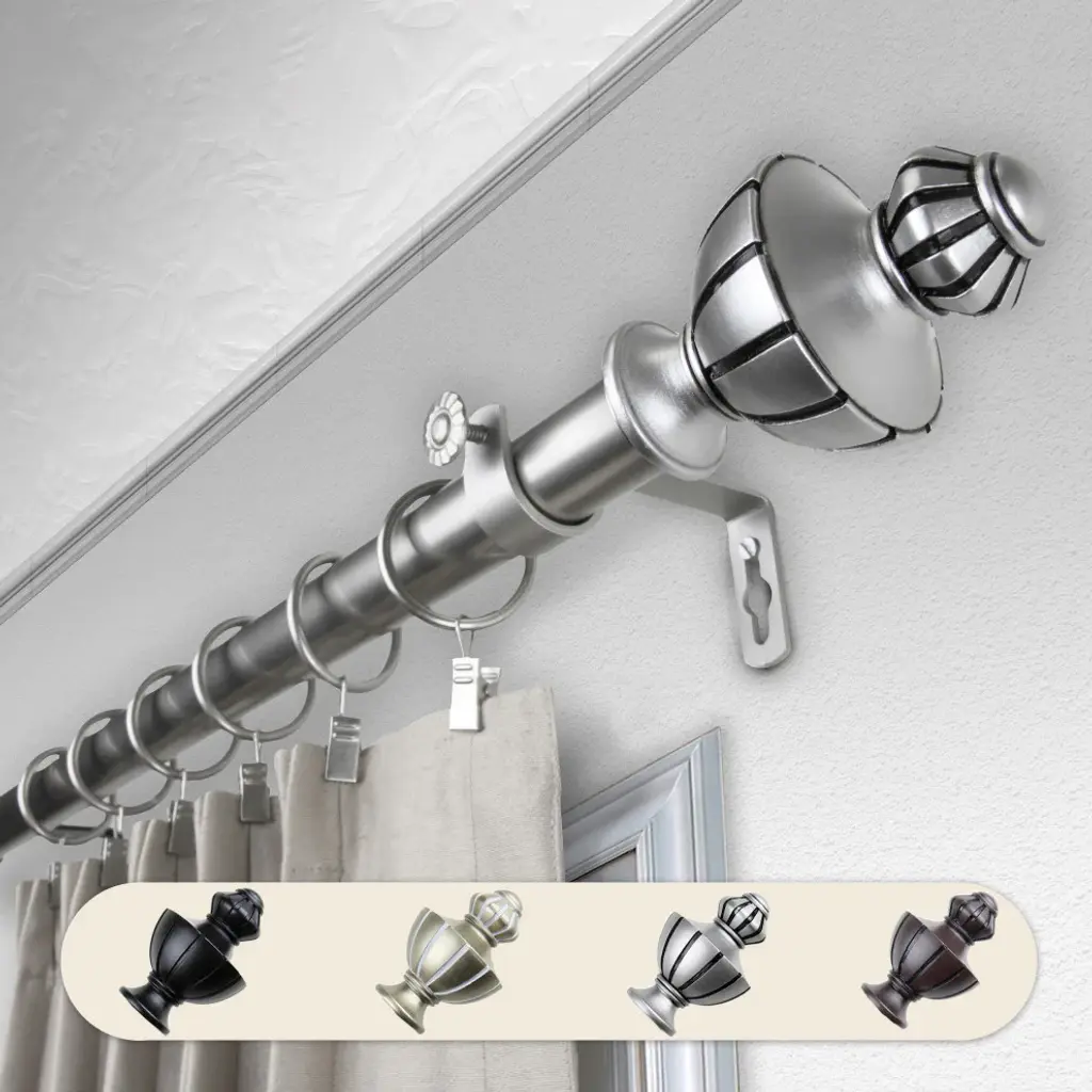 Central Design Products is thrilled to present our top-of-the-line Single Curtain Rods, the ultimate addition to any window treatment. Our high-quality rods are crafted with precision to provide a sleek and modern look to your home decor. Each set includes a single curtain rod, finials, sturdy mounting brackets, and all necessary mounting hardware. The elegant color of our curtain rods adds a touch of sophistication to your space. Upgrade your window treatment with Central Design Products'' Single Curtain Rods today! Includes 1 curtain rod of 1" diameter, finials, mounting brackets, and mounting hardware. Size: 160-240" Projection: 3.625" Rod Diameter: 1" Material: Steel