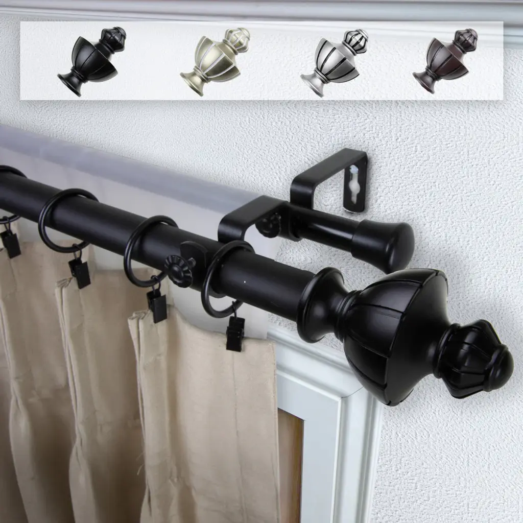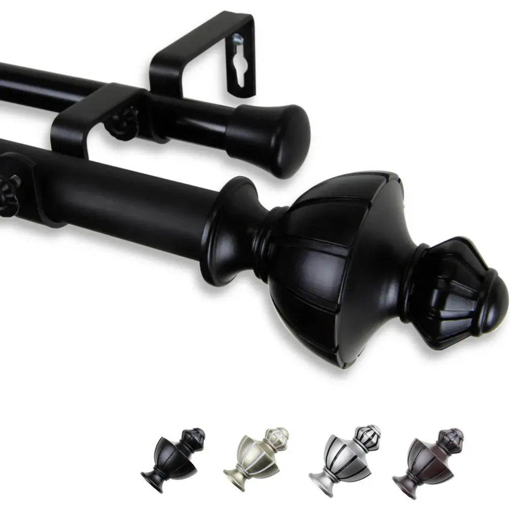 Central Design Products is thrilled to present our top-of-the-line Double Curtain Rods, the ultimate addition to any window treatment. Our high-quality rods are crafted with precision to provide a sleek and modern look to your home decor. Each set includes a double curtain rod, finials, sturdy mounting brackets, and all necessary mounting hardware. The elegant color of our curtain rods adds a touch of sophistication to your space. Upgrade your window treatment with Central Design Products'' Double Curtain Rods today! Includes 1 curtain rod of 1" diameter, one curtain rod of 13/16" diameter, finials, endcaps, mounting brackets, and mounting hardware. Size: 28-48" Projection: 6.75" Front Rod Diameter: 1" / Back Rod Diameter: 13/16" Material: Steel
