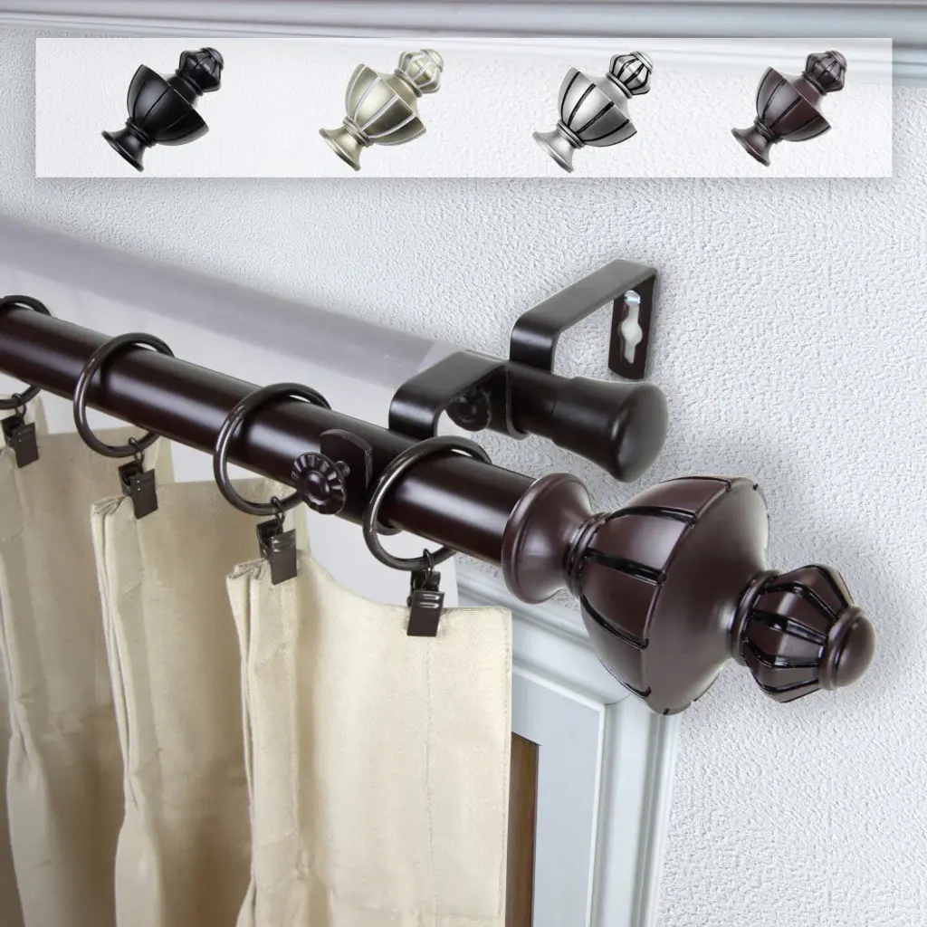 Central Design Products is thrilled to present our top-of-the-line Double Curtain Rods, the ultimate addition to any window treatment. Our high-quality rods are crafted with precision to provide a sleek and modern look to your home decor. Each set includes a double curtain rod, finials, sturdy mounting brackets, and all necessary mounting hardware. The elegant color of our curtain rods adds a touch of sophistication to your space. Upgrade your window treatment with Central Design Products'' Double Curtain Rods today! Includes 1 curtain rod of 1" diameter, one curtain rod of 13/16" diameter, finials, endcaps, mounting brackets, and mounting hardware. Size: 28-48" Projection: 6.75" Front Rod Diameter: 1" / Back Rod Diameter: 13/16" Material: Steel