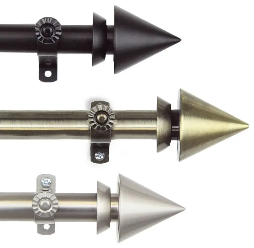 Introduce an elegant touch to your window treatment with this beautiful 13/16" diameter curtain rod set, made of high quality steel rods. Includes telescoping steel pole, mounting hardware, brackets, and 2 finials Projection: 2.875" Finial measurement: 2.5" W x 2" H x 2" D