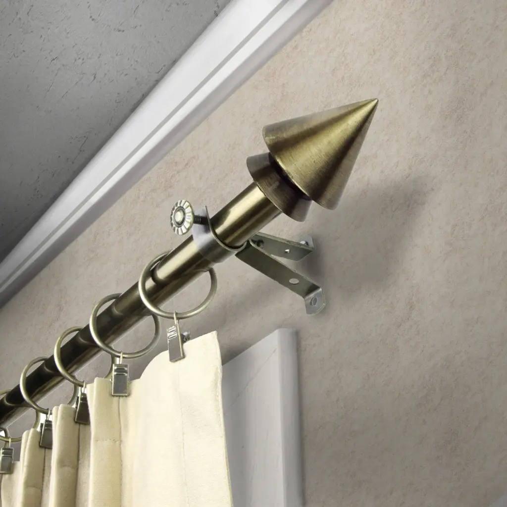 Introduce an elegant touch to your window treatment with this beautiful 13/16" diameter curtain rod set, made of high quality steel rods. Includes telescoping steel pole, mounting hardware, brackets, and 2 finials Projection: 2.875" Finial measurement: 2.5" W x 2" H x 2" D