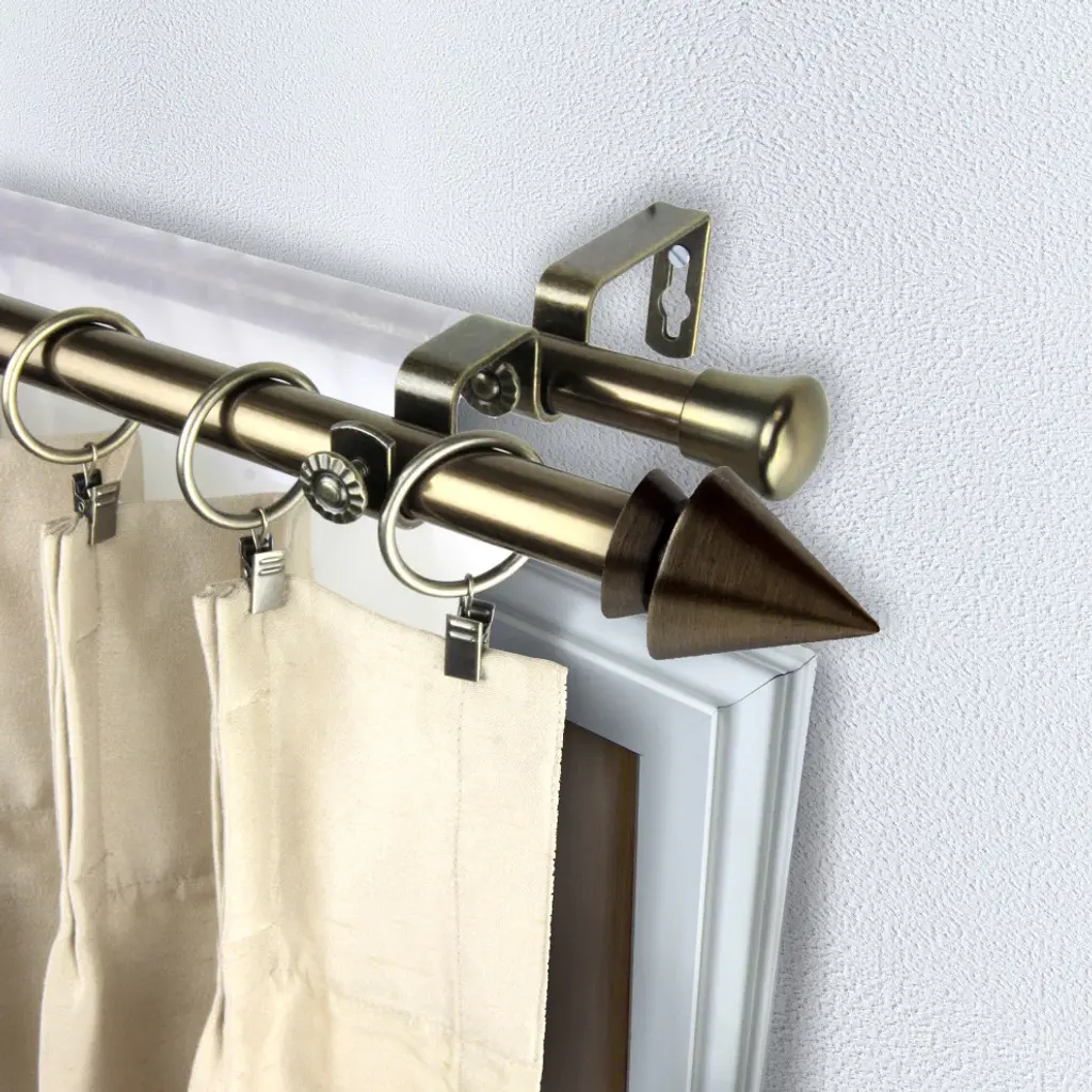 Introduce an elegant touch to your window treatment with this beautiful 13/16" diameter double curtain rod set, made of high quality steel rods. Includes 2 telescoping steel pole, mounting hardware, brackets, and 2 finials Projection: 2.875" Finial measurement: 2.5" W x 2" H x 2" D