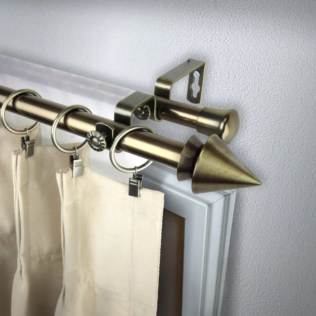 Introduce an elegant touch to your window treatment with this beautiful 13/16" diameter double curtain rod set, made of high quality steel rods. Includes 2 telescoping steel pole, mounting hardware, brackets, and 2 finials Projection: 2.875" Finial measurement: 2.5" W x 2" H x 2" D