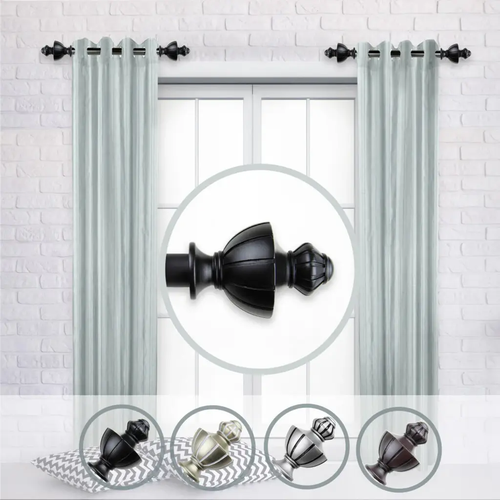 Central Design Products is thrilled to present our side curtain rods, which will add alluring style and refined touch to your window treatment and home decor. Add a nice touch to each side of your beautiful window to apply a modern and unique look in your living space. Includes two 1" diameter telescoping rods, four finials, four side mount brackets and mounting hardware. Size: 12-20" Projection: 3.625" Steel Rod